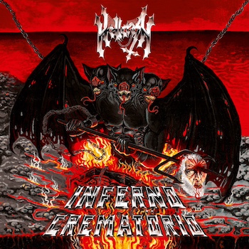 Vlammen, kettingen en een driekoppige vleermuis met op zijn drietand het hoofd van God. De hoes van Inferno Crematörio spreekt boekdelen. Met deze derde langspeler van het Italiaanse trio Hellcrash krijgen we een voorproefje van het vagevuur. Na de instrumentale introductie Flames Of Hades barst met het titelnummer en eerste single Inferno Crematörio de hel los. Met een ruige openingsriff en roffel zijn we meteen van God los en dat blijven we tot en met hellepoortsluiter Templar’s Curse.