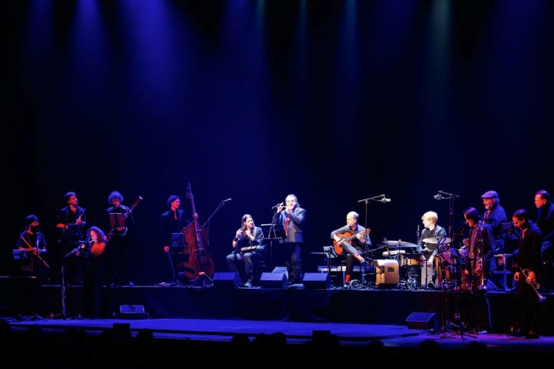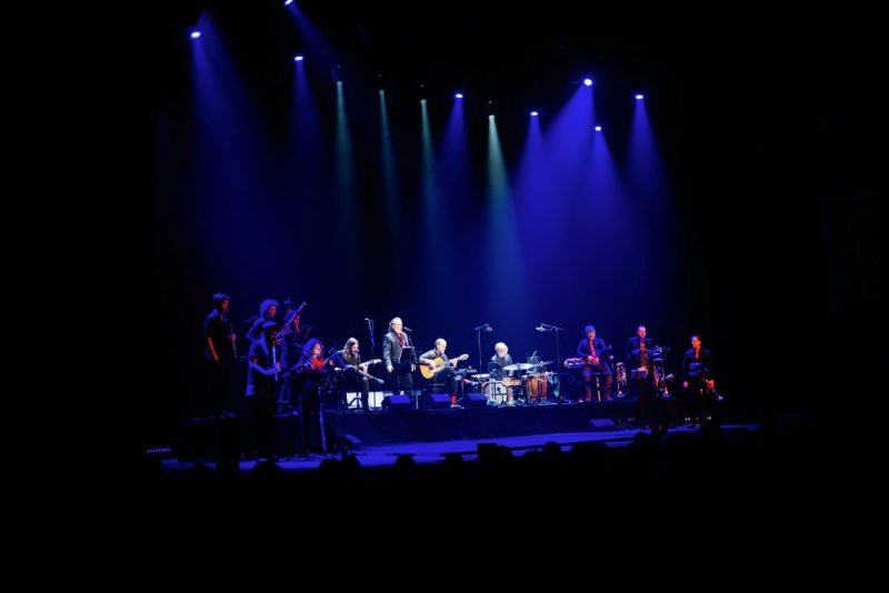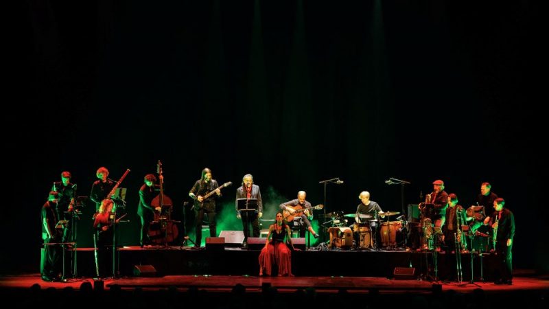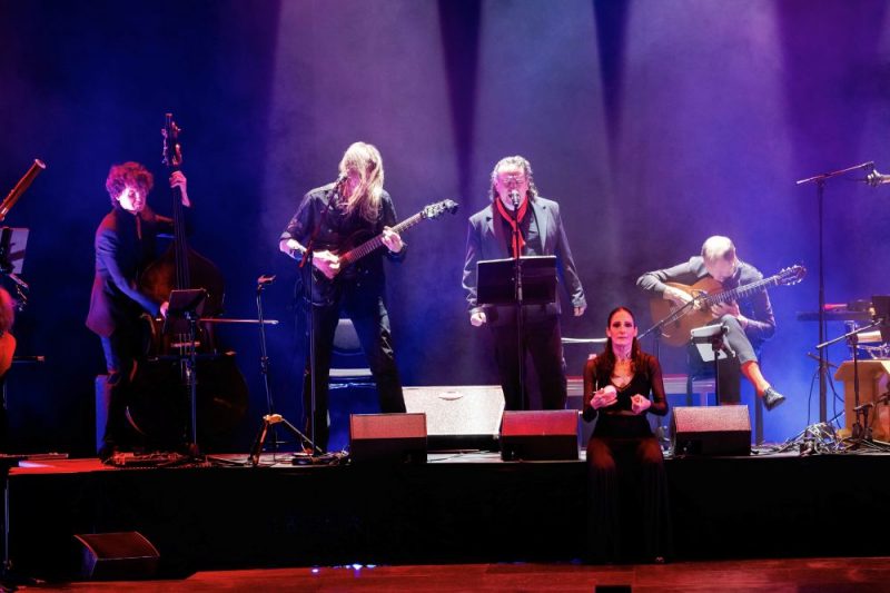 Midden in de voorstelling volgt dan Prometeo: The Rise Of Man, deel twee van de compositie van Florian, die het werk leven inblaast met hese gitaaraanslagen. De dame in het wit is inmiddels de dame in zwart en rood geworden en zo geeft ook de verbeelding invulling aan het verhaal dat – naar het lijkt – mogelijk niet helemaal de goede kant op gaat. In de “program note’ verduidelijkt Florian: Caught in between an unreachable heaven reserved for the gods above, and an infernal chasm of hell and inescapable destruction below, we humans are condemned to be the involuntary link between those two extremes. De muziek gaat intussen wel de goede (want duisterder) kant op want na donkere jazz eindigen we met een heftiger grunt en een messcherpe staande stop. Wat hier gebeurt, heeft toch wel een totaal andere invalshoek dan de “televised” versie van het genre die we nog wel eens voorbij zien komen, ook al door de stevige inzet van de blazers. De emotievolle zang van David Lagos trekt de boel dan steeds weer terug naar de volkstraditie.
