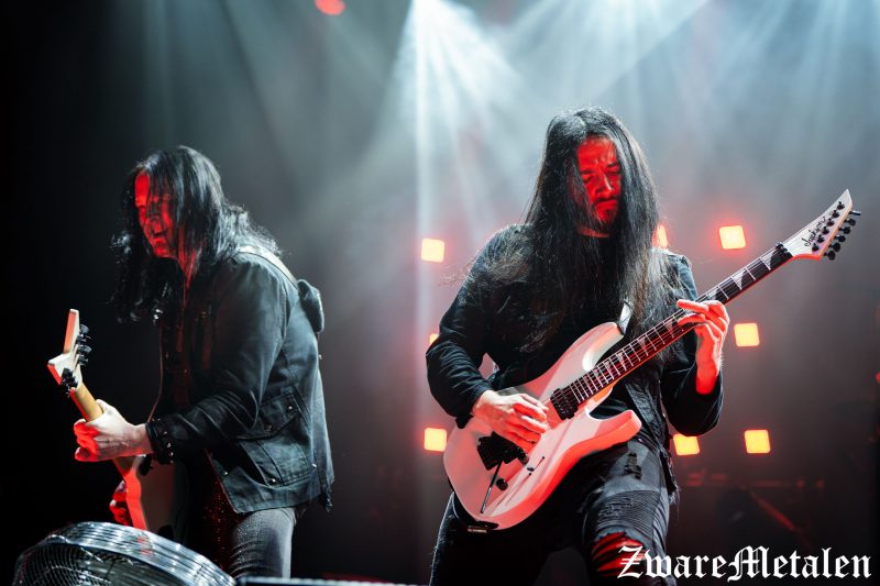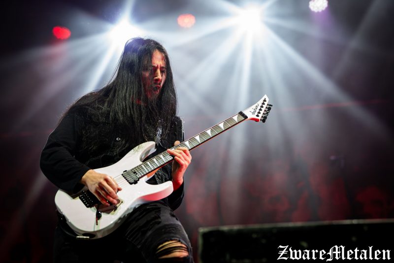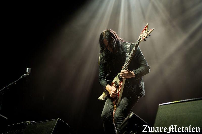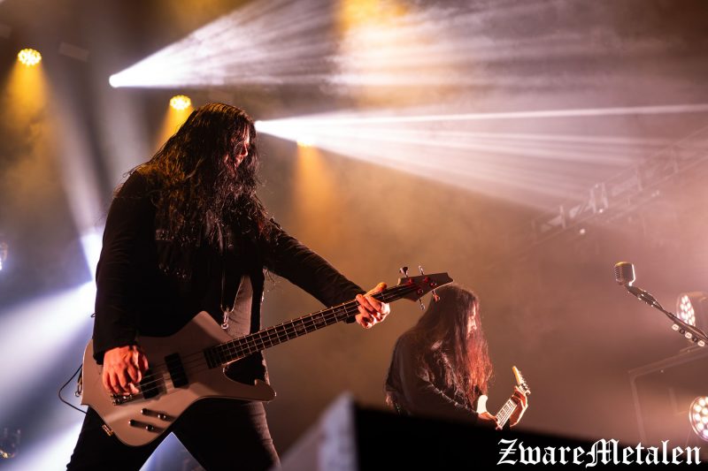 Met Amorphis als derde act is de avond allang geslaagd. De Finnen behoren al jaren tot de top van het melodische metalgenre. Ook vandaag bewijzen ze dat weer. Nadat de lampen uitgaan volgt een onheilspellende stilte en een vormt een paarse mist zich over het podium. Onder zachte tonen komen de bandleden vervolgens op, voordat Bones uit de speakers knalt. De tweede single van de het eind september uitgekomen negentiende studioalbum Borderland. Ook die plaat gooide weer hoge ogen, maar wie hier een albumtour wil zien komt bedrogen uit. Met slechts negen nummers te spelen kiezen ze voor een brede collectie uit hun imposante oeuvre. Daar wordt het natuurlijk niet minder van, want Amorphis speelt de beste nummers die ze gemaakt hebben. Als je ze nog niet kende hebben ze met deze setlist vast een paar zieltjes verworven.