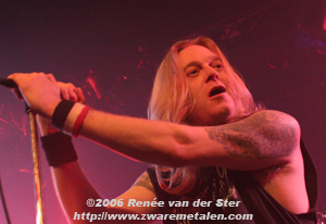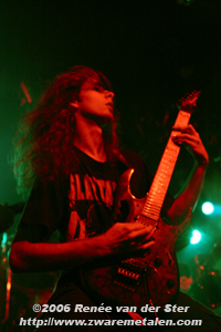Na het geweldige optreden van Necrophagist kwam Nightrage voor veel mensen een beetje over als een anticlimax. De band rond de rijkelijk met tattoo’s opgesierde zanger Jimmy Strimell tapt duidelijk uit een ander vaatje dan de opener van deze avond. Om mij onbekende redenen was gitarist Gus niet van de partij, maar gelukkig was Necrophagist gitarist Christian Muenzner bereid gevonden om de partijen in te studeren en derhalve de functie van tweede gitarist op zich te nemen, en dat deed hij zeer verdienstelijk. Ondanks de hardcore-zang leek de muziek toch redelijk bij het publiek in de smaak te vallen, want er kwam al een klein beetje meer beweging in de mensenmassa die naar voren was geschuifeld. Het geluid was prima en de zanger wist het publiek zelfs enigzins op te zwepen. Nummers als Elusive Emotion en de favoriet van de zanger Omen gingen er lekker in, maar het Police-nummer had de band wat mij betreft wel achterwege mogen laten. Naar mijn mening had deze band eigenlijk de avond moeten openen, maar verder was het wel een aangenaam concert om warm te draaien voor de volgende band.