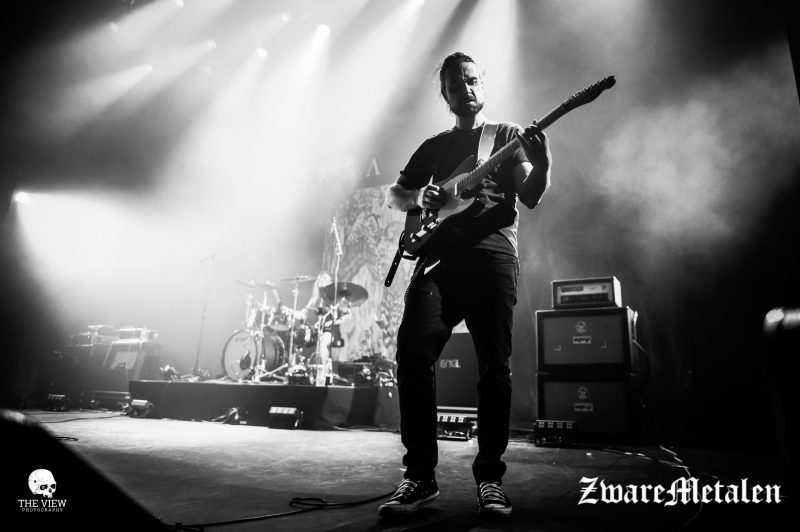 Geheel tegen mijn gewoonte in ben ik eens ruim op tijd vanavond en dat is maar goed ook, want E-L-R begint een halfuur eerder dan aangekondigd met hun set. Dat zorgt er voor dat de band voor een schaars gevulde zaal staat te spelen. Het Zwitserse trio speelt een mix van doom, post-metal en shoegazen die vorm krijgt in langgerekte composities en repetitieve ritmes die het publiek in een trance brengen. De spaarzame vocalen staan diep achterin de mix en dienen vooral als aanvulling op de sfeervolle en stemmige muziek.