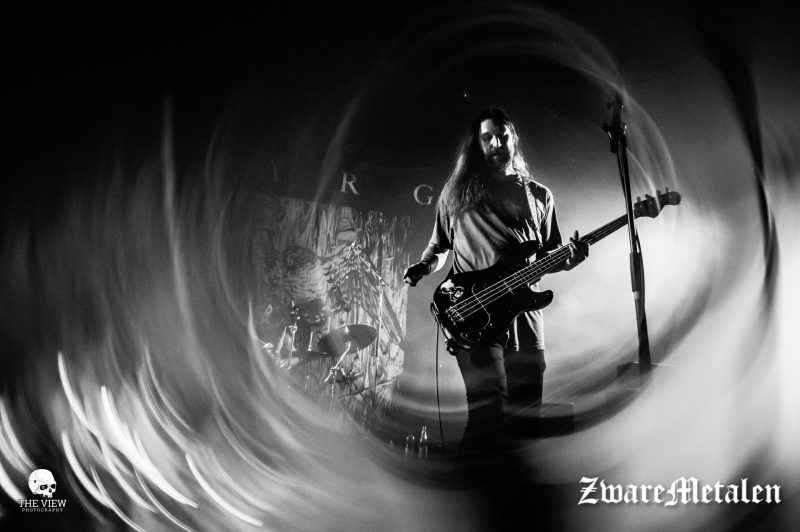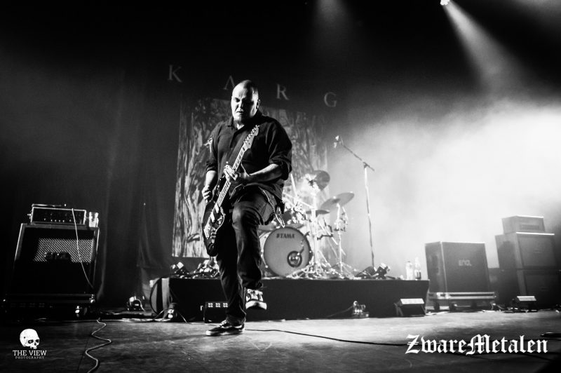 Als Karg aan hun optreden begint is de zaal al beduidend beter gevuld. Waar E-L-R eerder op de avond vrij statisch op het podium stond, gaat het er bij Karg een stuk beweeglijker aan toe. De stevige post-black leent zich dan ook wat meer voor een uitbundige podiumpresentatie. Het optreden van Karg, aangevoerd door J.J. op bas en zang, staat vooral in het teken van het aanstaande (inmiddels uitgebrachte) album Marodeur.