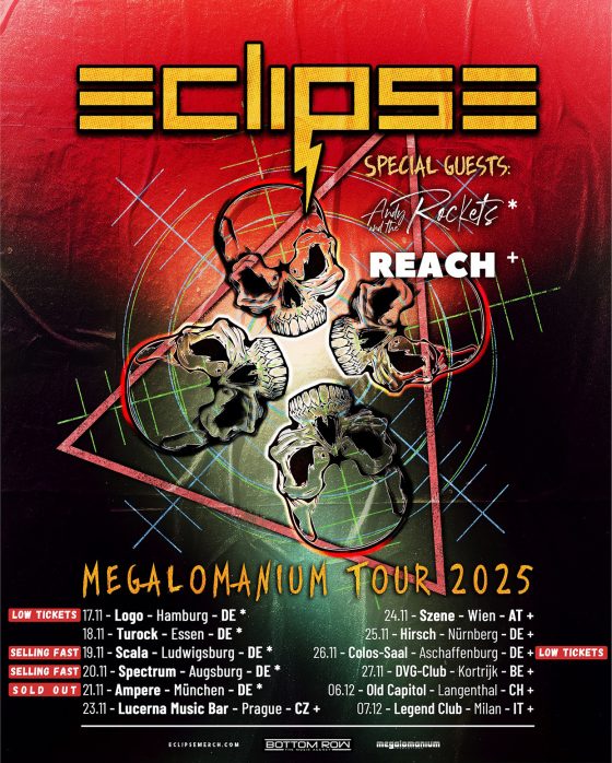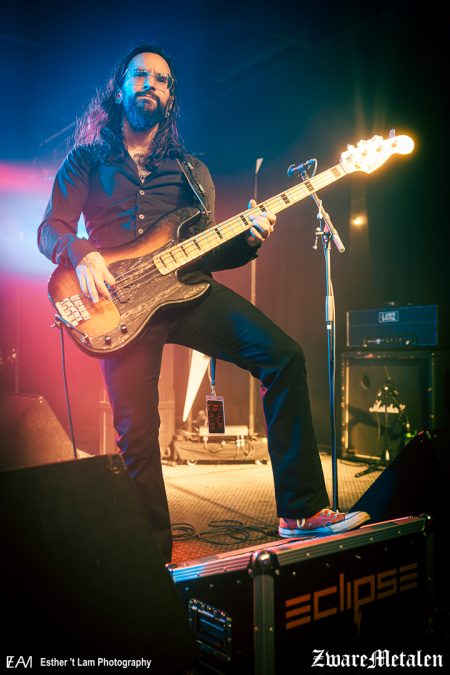 De Zweedse band Eclipse timmert alweer een flink aantal jaren aan de weg met solide albums in het hardrock-/heavymetalgenre. De laatste jaren hebben we ze in onze contreien live mogen zien op onder andere Graspop en Alcatraz, maar optredens in de Nederlandse en Belgische clubs zijn schaars. Reden voor Esther ‘t Lam om weer af te zakken naar Kortrijk om visueel en geschreven verslag uit te brengen, want ditmaal wordt wel in België gestopt en wel in de DVG Club. De support voor dit laatste gedeelte van de tour wordt verzorgd voor de Zweedse rockband Reach (recent nog te zien op Helldorado).