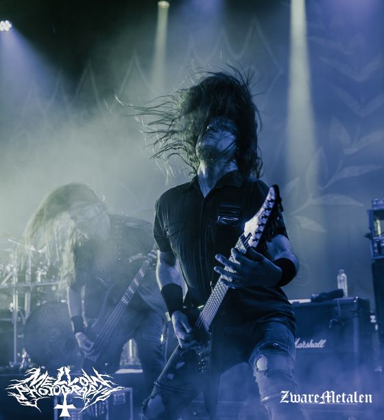 Al met al is het duidelijk dat we hier met een ervaren band te maken hebben en ik merk dat de mannen hun project Rise of Kronos serieus nemen. De dynamiek op het podium is groot en het enthousiasme van met name de zanger is bizar. Na bijna elk nummer bedankt hij het Nederlandse publiek dat is komen opdraven en het lijkt recht vanuit zijn hart te komen. De band speelt moderne death metal met veel groove. Ook mag de occasionele solo niet ontbreken. Een half uur mag de band zich tonen en dat doet hij in principe prima, ware het niet dat ik het geluid echt ondermaats vind. De bas en drum staan veel te hard in de mix, waardoor je amper een riff kan horen. En de riff, dat is waar het toch echt om draait bij Rise of Kronos. Een en ander wordt gaandeweg wel wat beter hoor, maar het houdt nog steeds niet over. Leuk is dan weer wel de manier waarop de verering van death metal wordt bewerkstelligd door het publiek het refrein van Legio Titanum mee te laten scanderen. Gelukkig is het publiek al in wat grotere getale op komen dagen intussen en het doet dan ook best lekker mee. Ik denk dat ik maar op zoek ga naar fysieke exemplaren van hun muziek, want ze weten er een best deuntje uit te persen…