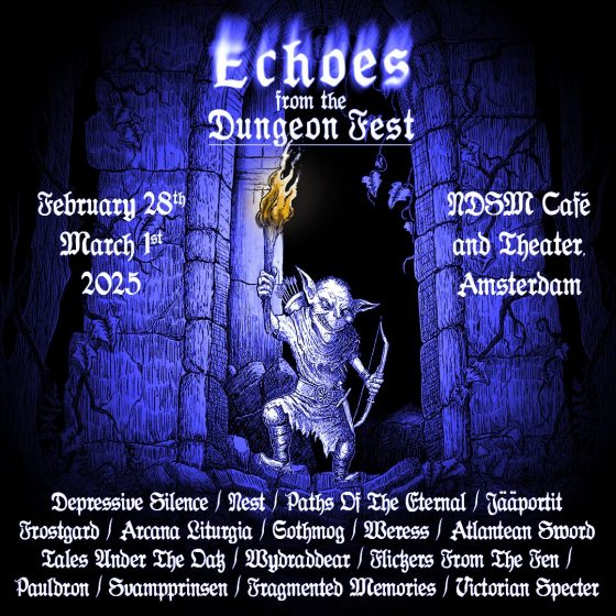 In de onheilspellende kerkers van de NDSM Werf aan het IJ in Amsterdam vond op 1 maart 2025 het eerste Nederlandse Echoes from the Dungeon Fest plaats. Dit is een festival waarvan dungeon synth het centrale thema is. Dungeon synth ontstond begin jaren ’90 in de koude blackmetalhoek, waar muzikanten van escapisme een vak maakten. Het genre bestaat bij de gratie van midi-keyboards met repeterende, vibrerende tonen en vage soundscapes met hier en daar een vlaag percussie. Iggy Paul is vandaag de gastheer van het dungeonsynthfestival en hij heeft artiesten uit alle uithoeken van de wereld gestrikt. Zij mogen vandaag hun eigenzinnige klanken aan een publiek voorstellen, iets wat eigenlijk vrij uniek is. Bij dungeon synth denk je vooral aan licht schizoïde figuren die het liefst in de afwezigheid van enig menselijk contact zichzelf amuseren met repetitieve tonen. Voor allen die erbij waren en willen nagenieten, of zij die benieuwd zijn hoe het was om erbij te zijn vertelt Dypfrys je alles over de acts en legt gastfotograaf Moritz Lengauer alles op beeld vast voor het nageslacht.