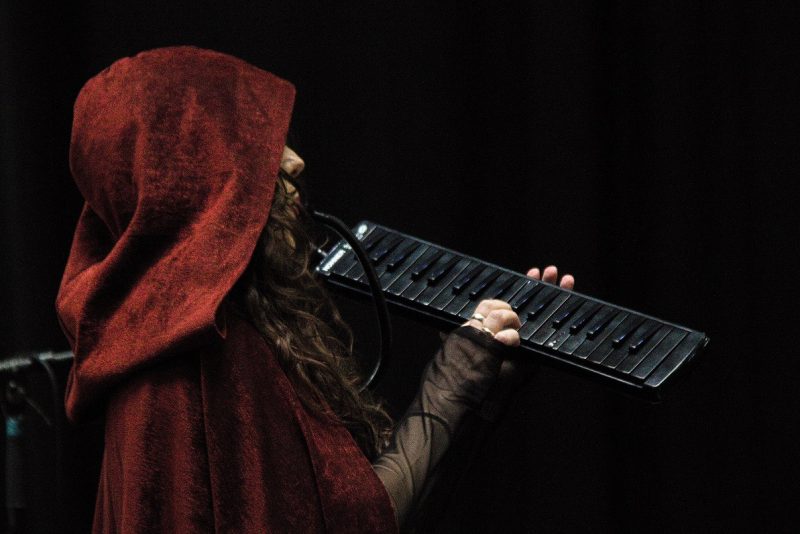 Voor Fragmented Memories is het vandaag een thuiswedstrijd, aangezien dit duo uit Amsterdam komt. Een duo inderdaad, want naast Roodkapje op de toetsen en melodica is er een meneer met een glittermasker op de elektronische trommels aanwezig. Ze starten met Into the Tombs of Mystery, dat zich inderdaad rond een vrij mysterieuze melodie ontwikkelt. Het is een repetitieve track, maar wel enigszins gehaast gespeeld. De muzikanten deinen mee op de muziek alsof ze op een schip zitten. Daarnaast springt de percussionist op en neer alsof hij een haas is. De nummers klokken af rond de drie minuten, waarbij herhaling de sleutel vormt. Het applaus na elke track is goed bedoeld, maar het doet pijn aan de flow. Smoke into Smoke, van het recent uitgebrachte The Dark Side of Lightness, wordt vooral geleid door de grondtonen en het metalen geluidseffect. De track voelt wat unheimisch aan, alsof er een soort spanning op zit. Fragmented Memories nestelt zich in de nachtmerries en spokende gedachten en deze track verwoordt dat perfect. Tijdens het laatste nummer Collecting Memories for the Future wordt nog een kleine scene uitgevoerd met een lichtgevende bal. Het publiek wordt hierbij betrokken en er wordt duchtig meegespeeld met dit toneelstuk.