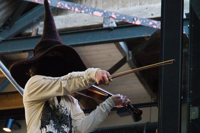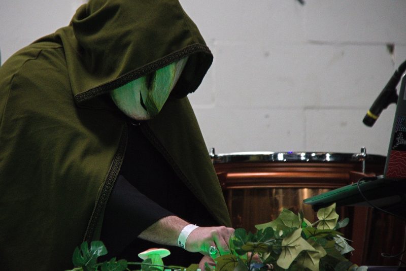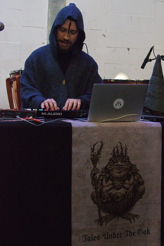 De artiest zelf is uitgerust als tovenaar, inclusief toverstaf en ratel. Hij bevestigt zijn status als na een korte intro Birth of the Toad King start, wat hij aankondigt als “some mature wizard stuff”. Temidden van vrolijk paddengekwaak ontvouwt zich een steeds verder ontwikkelende swing. Bij Secret of the Mushroom Wizard staan we gedwee mee te klappen op de maat. Het is een publieksinteractie uit de categorie ‘dingen die je niet verwacht te doen op een dungeonsynthconcert’. Met een funky melodie als begin en eindpunt heeft de track een zweverig middenstuk. De dalende tonen werken als een mantra en geven een hypnotiserend effect. De staf wordt gebruikt als sambabal/maraca. De tracks zijn verhalend en meditatief. De tovermuts gaat even af om af te koelen, maar het spel gaat onverminderd voort. Het is pas bij High Wold dat het verhaal een soort pauzemoment krijgt. Het is een langzame ambient track met een contemplatieve melodie. De vogeltjes fluiten en de wind waait door de bomen; het is alsof de lente doorbreekt. De muts gaat vervolgens weer op en het verhaal zet zich voort. Uiteindelijk wordt afgesloten met een korte verhalende track waarvan ik de naam schuldig moet blijven. Voor hen die geïnteresseerd zijn: Tales Under the Oak heeft ook een tweetal volledige luisterboeken uitgebracht over zijn fantasiewereld.