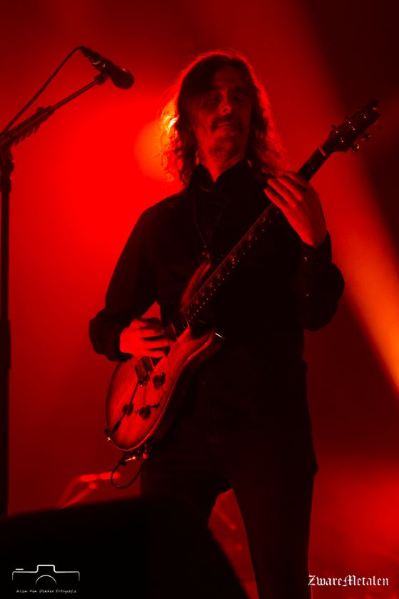 Nou moet je als recensent natuurlijk ook kritische punten naar voor brengen, maar soms heb je van die shows waarbij je eigenlijk weinig kunt opnoemen, behalve dus het eerder genoemde vlakke snaregeluid. Verder mis ik natuurlijk nummers in de setlist, vooral het compleet negeren van Still Life doet wel een beetje pijn. Maar met een discografie als Opeth inmiddels heeft, dan moet je keuzes maken en al helemaal als je ook het nieuwe album de aandacht wil geven. Na een oudje in de vorm van The Night and the Silent Water wordt het proggy §3 gespeeld, ook weer met veel overtuiging, ondanks de behoorlijke moeilijkheidsgraad. Daarna gaat het helemaal los met de fantastische uitvoering van Ghost of Perdition, een nummer dat ze eigenlijk altijd spelen, maar toch weer gewoon een hoogtepunt. Als je na zo’n nummer hard gaat roepen om The Drapery Falls dan weet je wat je kunt verwachten. Mikael zet slapjes het cleane intro van dit nummer in, stopt plotseling en zegt tegen de betreffende toeschouwer ‘Do we look like a band taking requests?’ Nee, het is weer tijd voor het nieuwe album, waarvan het prachtige slotakkoord A Story Never Told met verve wordt vertolkt en waarbij gitarist Fredrik Åkesson het podium pakt met de majestueuze solo aan het einde. Opnieuw meters kippenvel.