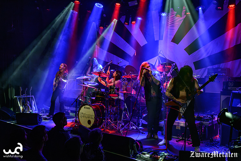 Vorig jaar hebben de heren hun tweede studioalbum Satanic Panic Attack uitgebracht en daar horen we een aantal nummers van voorbij komen. Ze lijken echter ook in een creatieve periode te zitten waarin het nieuwe werk op een hoger tempo naar buiten komt. Vanavond staan namelijk ook twee nog niet uitgebrachte nummers op de setlist. Daaronder Apocalypse Rock, een term die de band zichzelf lijkt toe te eigenen op hun sociale media. Het zal mij niks verbazen als dat de titel van hun vervolgplaat wordt.