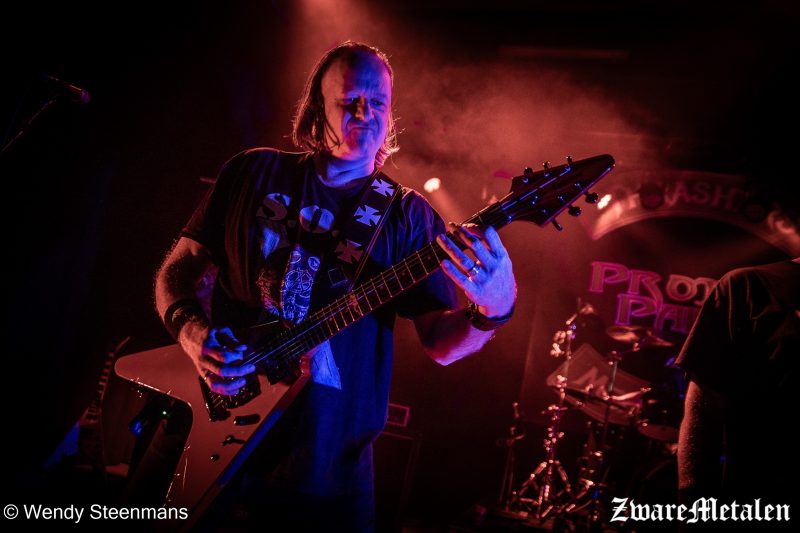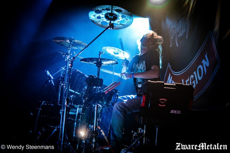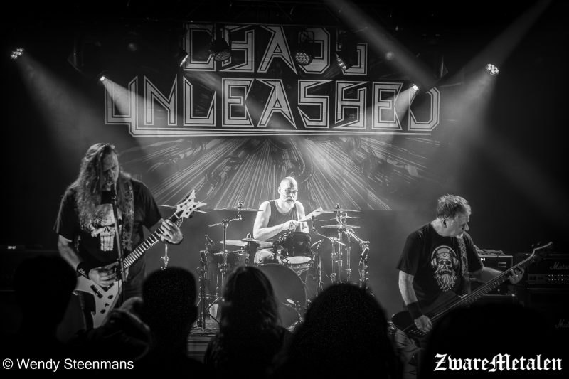 Het thrashgenre lijkt de heren ook goed af te gaan. Alle elementen zitten erin, waaronder het anti-establishmentthema dat altijd terugkomt. Zo te horen in American Gods, dat volgens van den Bos over Donald Trump en ‘al die andere klootzakken’ gaat. Chaos Unleashed laat degelijke grooves horen en hier en daar een kundige solo. Prima band om de avond mee te openen en het brengt de bekende enthousiastelingen alvast in beweging. De set wordt afgesloten met een cover van het Kreator, Extreme Aggression. Een nummer dat ze dan misschien niet zelf in elkaar geknutseld hebben maar waar ze zichzelf vol overgave in kunnen storten in de overtuiging dat het goed is en dat ze met een knaller het podium kunnen verlaten.