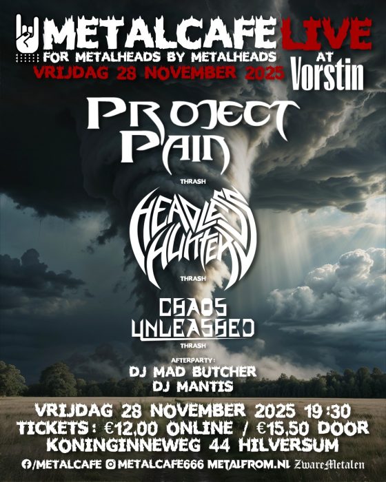 Het is misschien een gemiste kans om op black friday geen black metal te programmeren, maar met drie thrashbands voor bodemprijzen is het zwaarste café van Nederland in elk geval een bezoek waard. METALCAFÉ uit Hilversum zet voor de negende keer een drietal Nederlandse bands op het podium in de Vorstin en Zware Metalen was er wederom bij. Met Chaos Unleashed, Headless Hunter en Project Pain werd er weer flink geheadbangd en draaide de pit op volle toeren. Ruben was erbij voor het verslag en gastfotograaf Wendy Steenmans was zo vriendelijk haar plaatjes beschikbaar te stellen.