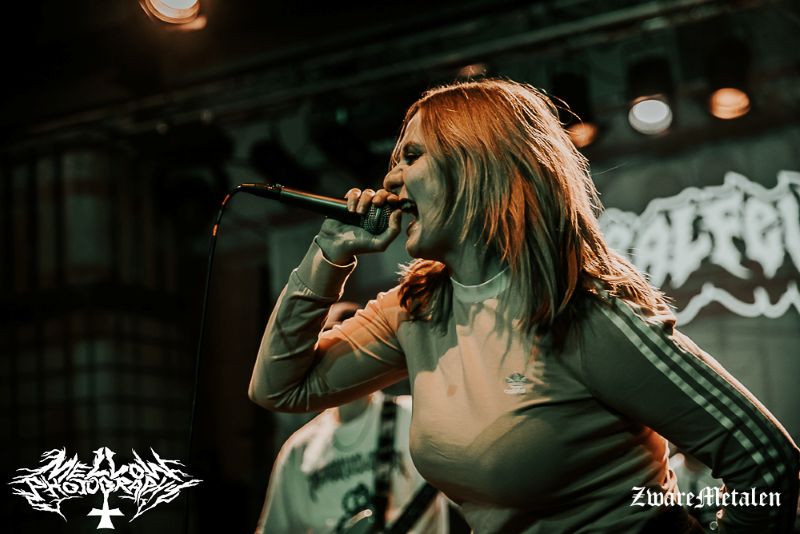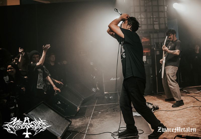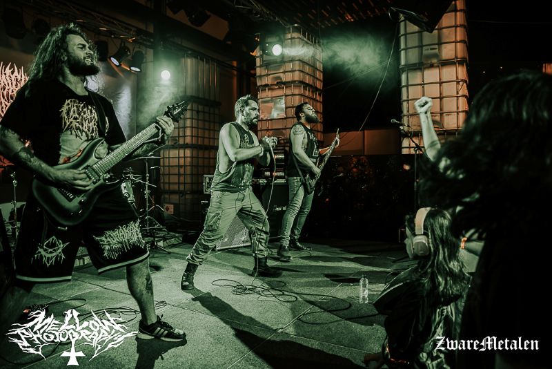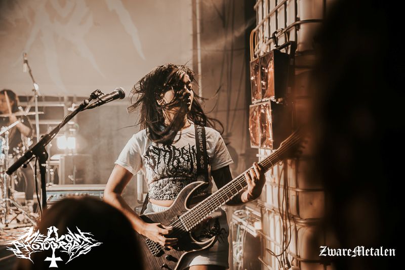 Vervolgens ontmoeten we weer een hele vette deathcoreband. Het Frans/ internationale gezelschap onder de naam Vermicular Incubation heeft slechts één plaat uitgebracht tot nog toe en die dateert alweer van 2019. Helaas was het lastig voor mij de muziek volledig op waarde te schatten want ook deze band kende ik nog niet. Ik ga ze zeker nog checken na het optreden. Wat me zeker bij zal blijven zijn de lood- maar dan ook loodzware slams waarbij er zo’n aanslag op mijn lichaam wordt gepleegd dat ik spontaan anti peristaltische reflexen krijg waar ik mijn broodje pikant nog net binnen kan houden. Zo zwaar dat kan niet goed zijn voor de mens. Evengoed wordt er volop meegedaan met de band door publiek en wordt er een strakke set afgeleverd. Ik ben benieuwd als ik ze later terugluister.