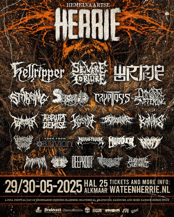 Op Hemelvaartsdag werd HAL 25 in Alkmaar weer omgetoverd tot een toegangspoort voor de mensen die liever de andere route willen bewandelen, namelijk die van de met zwavel geplaveide weg naar de onderwereld. Organisator Mike Blommestein, van het inmiddels befaamde Herrie Festival, heeft voor de Hemelvaartse Herrie twee dagen ingeruimd om een niet misselijk aantal van totaal eenentwintig bands uit te nodigen, die garant staan om je genadeloos om de oren te slaan met een enorme hoeveelheid blafharde decibellen. Fotograaf Mell, gewapend met camera en JohannesV, gewapend met pen en papier, gingen met goed gemoed en vol vertrouwen de lawaaimarathon aan.
