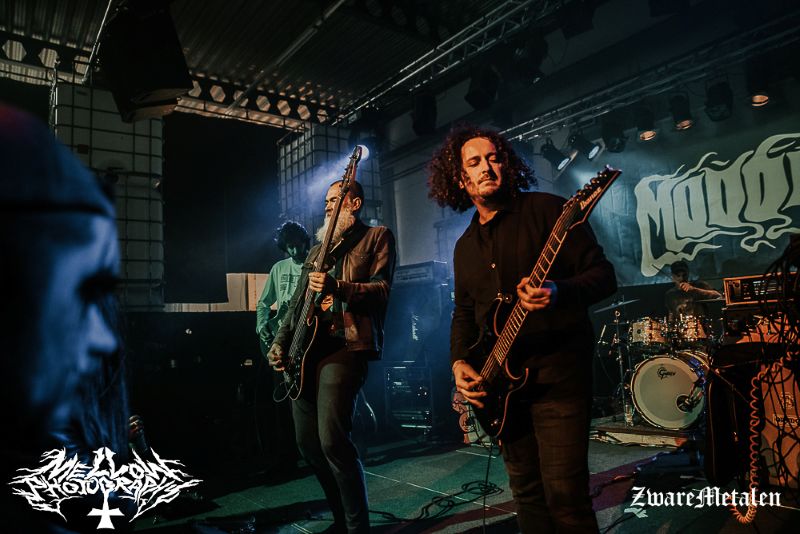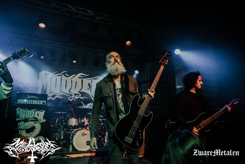 Modder. De Belgische band staat aangegeven als sludge en doom metal. Om heel eerlijk te zijn vind ik beide muziekstromingen niet helemaal bij me passen maar omdat ik vandaag toch voor alle bands verslag wil doen ga ik toch kijken. Ook omdat ik het wel een bijzondere toevoeging vind op het rooster ben ik wel nieuwsgierig. En hoe kunnen vooroordelen jezelf toch veel prachtige momenten laten missen. Met andere woorden, wat ben ik blij dat ik toch ben gaan kijken. Dit is gewoon een geweldige band! Volledig instrumentaal maar wat een geweld! Ja, inderdaad hoor je doom en sludge, maar de mannen schromen totaal niet om hier en daar een blastbeat erin te gooien, dan wel even fiks de agressie op te voeren. Dat levert een prachtig contrast op wat ook weer wordt versterkt door de synthesizer op het podium. Onheilspellende shit zeg. De fanatieke Belgen gooien hun ziel en zaligheid in het optreden en met name de kale bassist met imposante baard gaat helemaal los. Wat een verrassing is deze band en ik ga ze absoluut vaker beluisteren.
