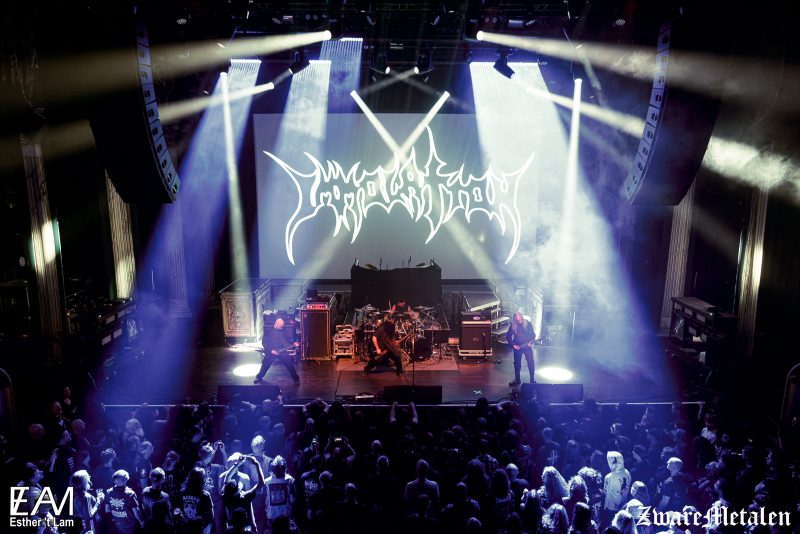 Wel handig dat Immolation de eerste band van vandaag is: als er nog wat etensresten tussen onze tanden zitten worden die er vakkundig uit gerost door dit deathmetalinstituut. Kwart over zes trappen de Amerikanen af, waar gaat dit over? De zaal is echter al bom- en bomvol, dat is een mooie geste voor de band die toch al bijna veertig jaar hun groovende death metal op de wereld loslaat.
