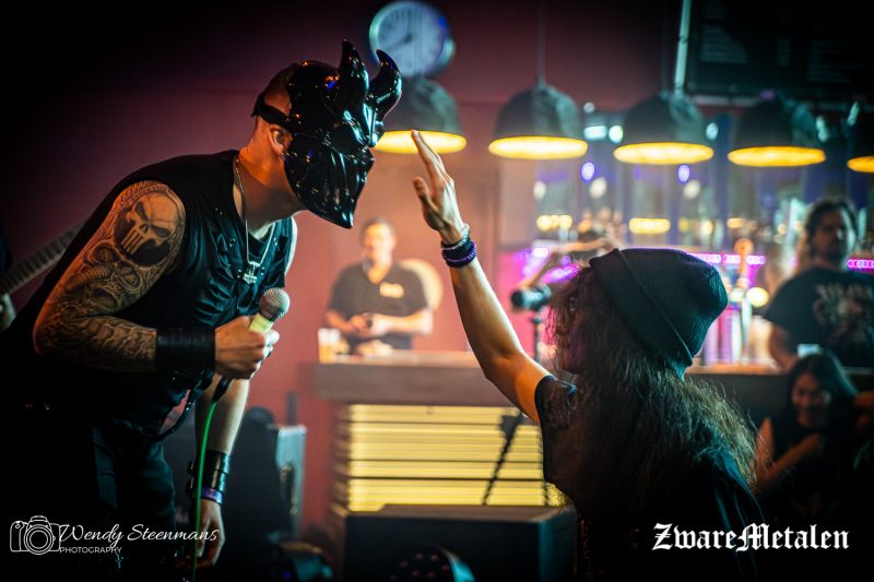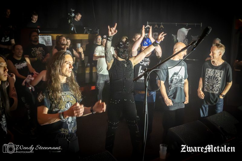 Na tien nummers, inclusief een toegift waarbij de gitarist maar even in het door de flitsende lampen flink uitgedunde publiek gaat staan, zit de wervelende set er alweer op en stroomt de zaal leeg. Achterblijvers kunnen nog een verzoeknummer aanvragen bij de huisdj’s zoals we inmiddels van Metalcafé gewend zijn.