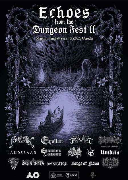 Een queeste! Vandaag dalen we af in de kerkers van misschien wel het leukste niche-festival van Nederland: Echoes From The Dungeon Fest II georganiseerd door Iggy Paul. Hieronder lees je het verslag van de zaterdag. Waarom heet het dan een festival hoor ik u denken? Omdat de echte die-hards al vanaf donderdagavond en vrijdag waren gestart met het bezoeken van de optredens. Mijn leven laat slechts één dag toe helaas. Zoals Iggy Paul vandaag zal vertellen was hij op het Belgische Dark Dungeon Festival en besloot: dit hebben we in Nederland nodig. En hij had gelijk. In 2025 vond hier het eerste festival plaats. Dit jaar gaan we voor een vervolg! De locatie is Ekko geworden. Een Utrechts podium, dat vooral een podium is. Vorig jaar vond het festival plaats in de NDSM loods in Amsterdam, wat vooral een ontmoetingsplek is. Er is een kleine merch bar, zeker vergeleken met de vorige editie. Het publiek is in Utrecht vooral herkenbaar als metaalhoofd, waar vorig jaar een toch iets diverser publiek te zien was. Maar tot zover de vergelijkingen met vorig jaar. Dungeon synth mag dan zijn roots in black metal hebben, het blijft fantasiemuziek. Muziek die echt niet alleen interessant is voor mensen die van metal houden, maar ook voor liefhebbers van: klassiek, neoklassiek, drone, filmmuziek en ambient. De zaterdag is goed gevuld met vele uren aan dungeon synth. Dat is al een prestatie op zichzelf, want dungeon synth wordt maar weinig live gespeeld. Het beperkt zich meestal tot stoffige zolderkamers en donkere garages waar creatieve figuren in alle eenzaamheid hun fantasie in muziek omzetten. Iggy Paul doet de (fucking) aankondigingen vandaag. Hij probeert daarbij zorgvuldig die krachtterm te ontwijken, maar in zijn enthousiasme blijkt dat toch vrij lastig wat tot enige hilariteit leidt. Hij introduceert alle artiesten vandaag persoonlijk. Om iedereen vast te leggen is Mary Elkonina aanwezig. Zij maakte vandaag prachtige foto’s van de artiesten en legde de essentie haarfijn vast.