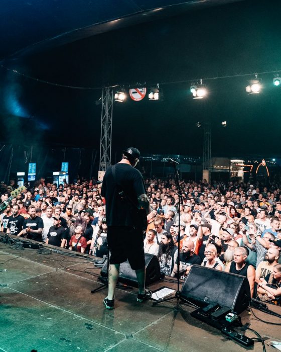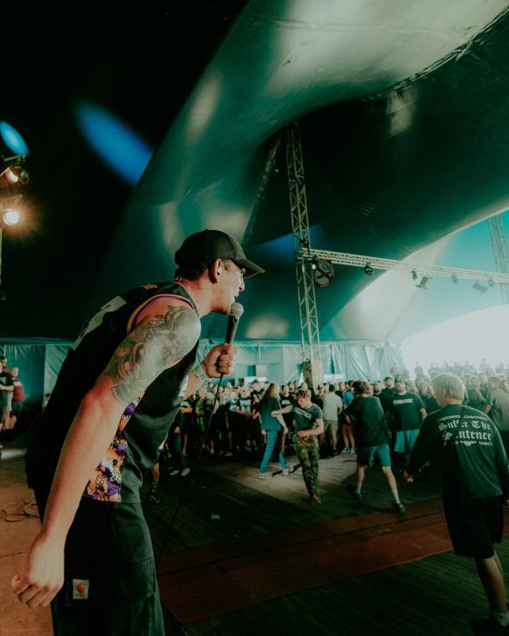Na de jongere veteranen van Stray From The Path is het tijd voor de relatieve legendes van de Boston hardcore: Slapshot. De band is aan een heel lange afscheidstournee bezig; de mannen stoppen ermee. Sowieso veel respect dat deze band nog toert. En eerlijk is eerlijk: het vlamt nog altijd. De band start vrij energiek met No Friend Of Mine. Dit nummer is dus geschreven in 1993. Veel bezoekers van Jera waren toen vermoedelijk nog niet eens geboren. Dat is wel mooi; het is hier geen old man’s gathering, maar er staat een gemêleerd publiek. Alleen jammer dat de tent niet vol staat, maar goed. De mensen die er wél staan zie hoe Choke weer als een dirigent over het podium paradeert en hoort weer aan dat hij van chocomel houdt (Chokeomel!).