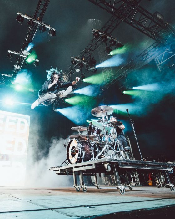 De muziek dreunt bij vlagen serieus door, zoals in Afterlife, waarbij de planken op de vloer beginnen te trillen. Dit is een liveband pur sang. Dat bewijst de crowdsurfer countdown op de visuals ook weer. De zang is verdeeld tussen Stephen en Aric: Aric doet vooral de Chemical Brothers-achtige zang terwijl Stephen afwisselt tussen zang, hip hop en geschreeuw. Het blijkt een verrassend vette combinatie, die het beste tot wasdom komt in het nummer Fuse, een van de hoogtepunten van de set. Over hoogtes gesproken: Stephen laat nog een sterk staaltje acrobatiek zien door metershoog in de tentpilaar -vanuit zowat het hoogste punt- doodleuk gitaar te spelen.