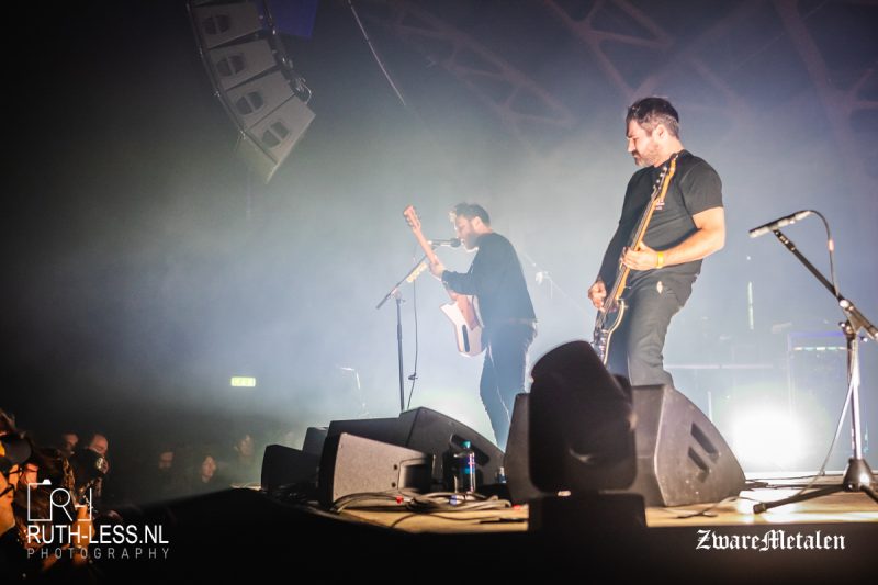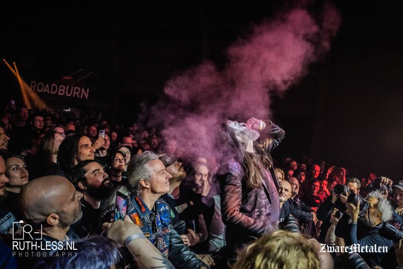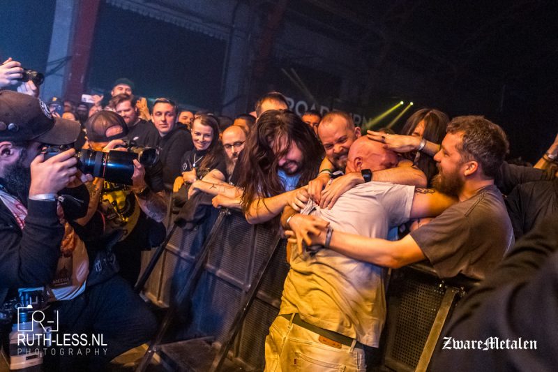 Op het podium ziet het er wel gezellig uit. Blijkbaar mocht iedereen weer meedoen en zo staan er een hele rits aan gitaristen en zangers op het podium. Niet dat je dat direct terug hoort, maar het oogt in ieder geval wel imposant en tof. Daarbij straalt de band spelplezier uit; een enorme energiegolf slaat over van band naar publiek.