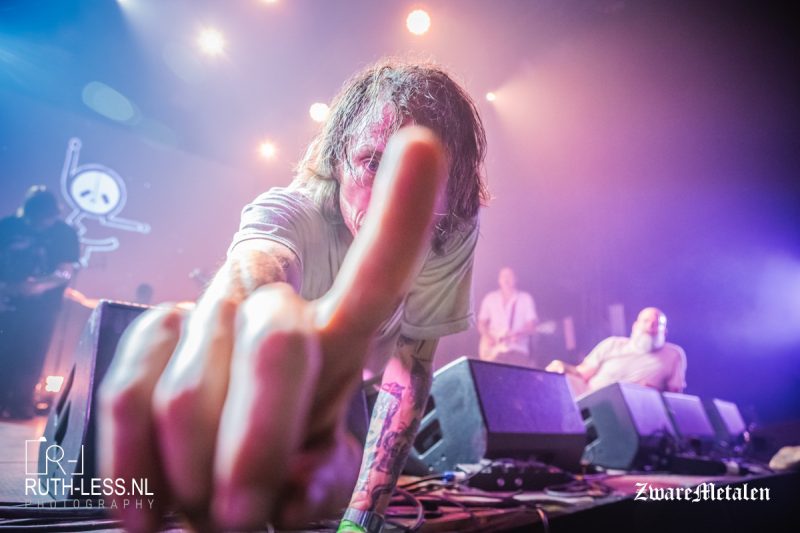 Zanger Raygun Busch staat weer in zijn korte sweatpants op het podium en loopt de hele show als vanouds heen en weer, schreeuwend, zingend, prekend, en uiteraard schuift hij zijn passie voor klassieke films weer niet onder stoelen of banken. Net als twee jaar terug kan de naam Paul Verhoeven niet onbenoemd blijven en hij geeft aan zelfs Turks Fruit en Spetters te hebben gezien. De man is fan. Verder is het weer een feest aan stuiterende riffs, hakkende drums en de ronkende, chunky baspartijen van Stin zijn een lust voor het oor en voor je innerlijke organen. Tijdens het nummer Shame laat Busch zijn veelzijdigheid het meest horen met de spoken word coupletten, het clean gezongen refrein gevolgd door de diepe grunts en screams in het lompe tussenstuk. Lekker! Wat mij betreft over twee jaar maar weer terug naar Tilburg, hopelijk weer met een verse nieuwe plaat onder de arm. (RL)