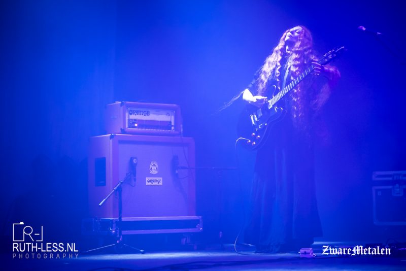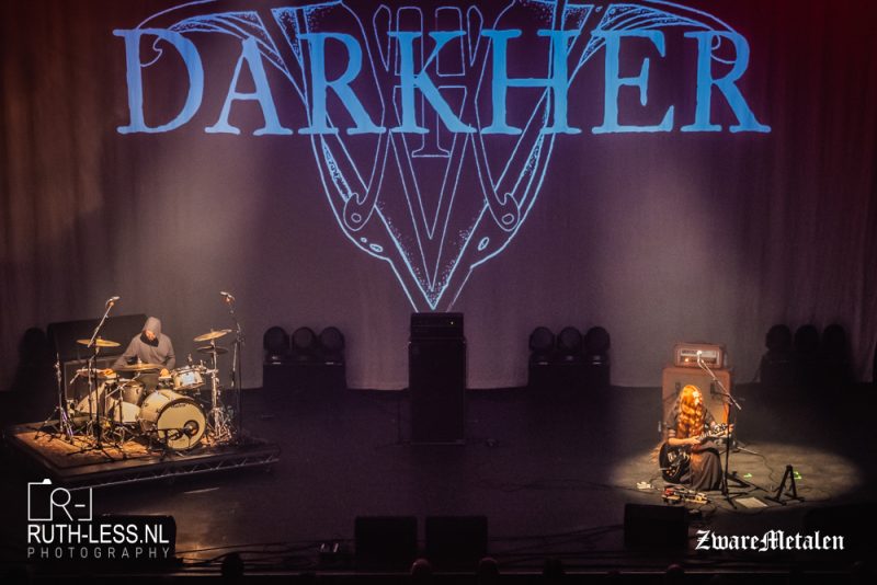 Wie ziet eruit als Rapunzel en klinkt als Chelsea Wolfe? Jayn van Darkher natuurlijk. Wat vandaag bij veel acts geldt, geldt ook hier: het podium is uiterst sfeervol belicht. Dat sfeervolle kun je gerust verder trekken naar de muziek. De puik klinkende doomriffs komen volledig tot wasdom vandaag, net als de stem van Jayn. Zuiver en vol, zeker bij nummers als Foregone en Hollow Veil. Dit is muziek waarbij je vooral met je ogen dicht moet luisteren, want afgezien van het enthousiasme van drummer Christopher, staat Jayn er stil bij. Kwade tongen kunnen het zelfs statisch noemen, maar dit moet je gewoon tot je nemen, je laten overspoelen door de vloedgolven die de riffs veroorzaken. Van een kabbelend begin, naar rollende golven tot de uiteindelijk onvermijdelijke tsunami die losbarst. Het blijft altijd fraai om naar te luisteren, net als naar de loepzuivere zang die verschillende hoogten op gaat vandaag. Het publiek is bij vlagen muisstil en laat het graag tot zich komen. Een fraaie show.
