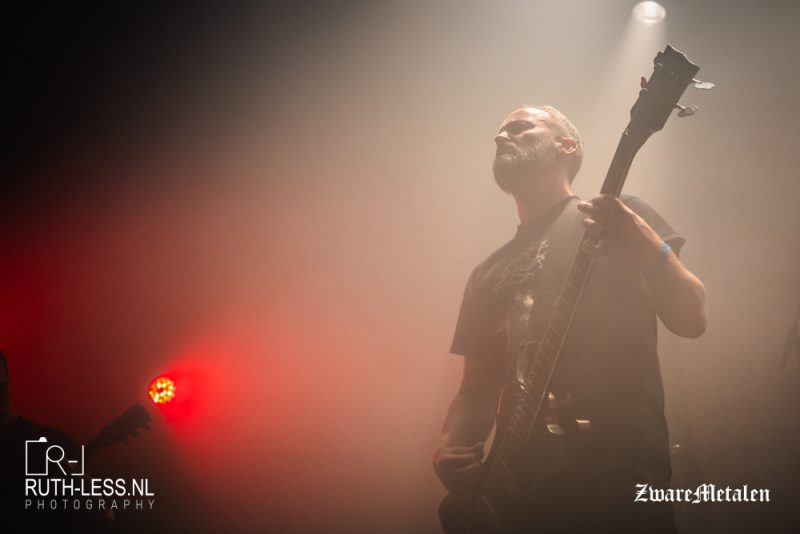 De band heeft een nieuwe plaat uit, Our Breath Is Not Ours Alone. Daarvan wordt vandaag het, voor hun doen, vrij korte The All-Consuming Work Of The Soul’s Foreclosure gespeeld. De riffs malen als een bezetene door, maar nog meer indruk maakt Discarding All Adornments, dat op plaat wordt gezongen door Amelia Baker van Cinder Well. Vandaag neemt Charlotte Wessels dat deel voor haar rekening. Het is een fraai moment, waarbij het sonische geweld terugvalt tot slechts enkele aanslagen, terwijl Joost knielend naast Charlotte zit en goedkeurend het publiek in kijkt. Wij kijken goedkeurend en vol bewondering terug. De show van Terzij De Horde is een grote zegetocht.