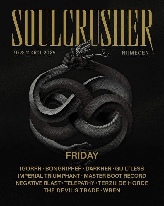 Het is weer tijd voor de Nijmeegse sloop-tweedaagse. Soulcrusher is al jaren een vertrouwd en geliefd festival, dat zijn wortels diep in de underground metal heeft. Sludge, doom, black of death metal, de bands die er spelen brengen hun muziek vaak vol overgave en het publiek luistert gretig en geconcentreerd mee. Het festival wordt bovendien gehuisvest in een van de meest sfeervolle zalen van Nederland: Doornroosje. De organisatie weet ook altijd een combinatie neer te zetten van gevestigde bands en aankomend talent. Of dat dit jaar ook zo is? Voor derde keer op rij doet de tandem Friso (verhaal) en Ruth (foto’s) verslag.