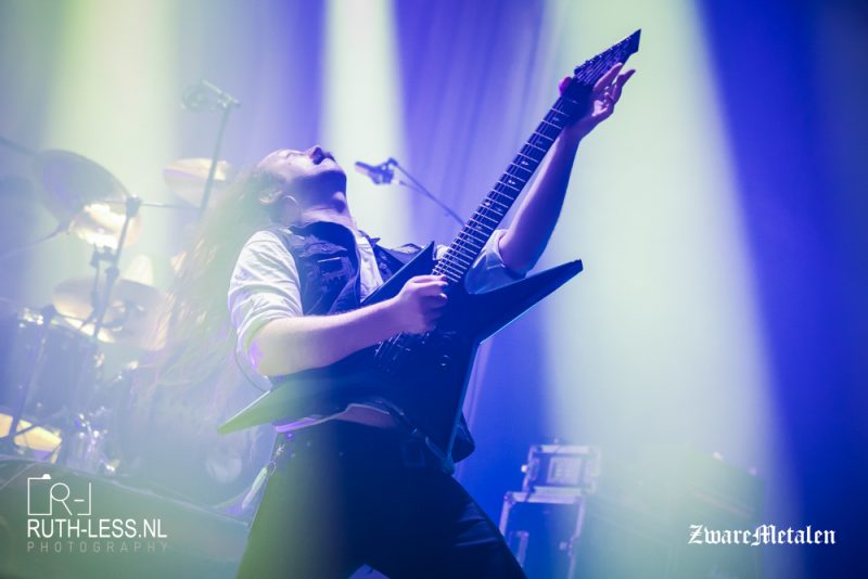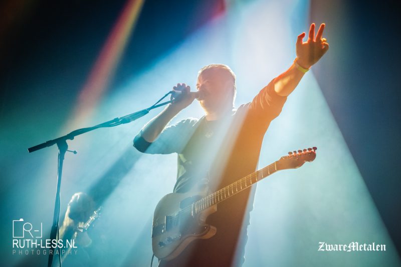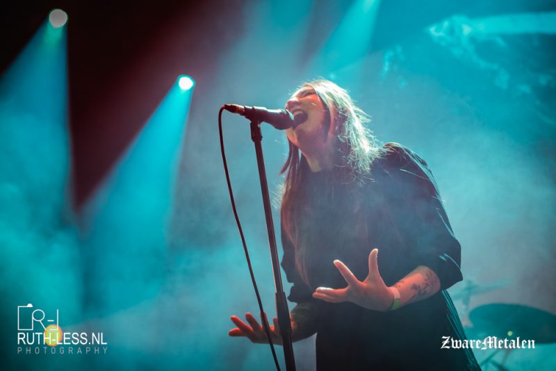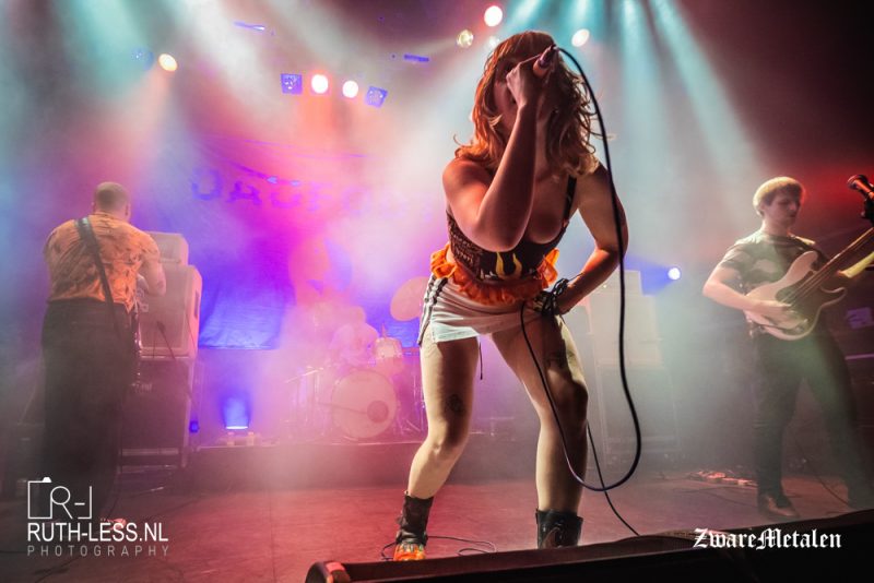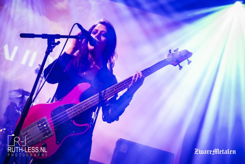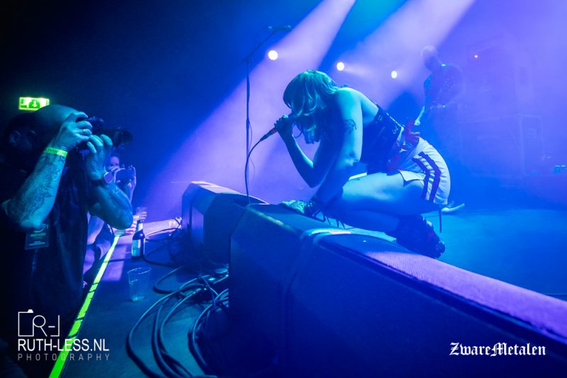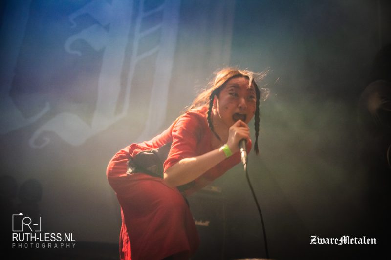 Toch ben ik niet helemaal kapot van het stemgeluid van zanger Chris. In dat opzicht is het fijn dat de band ook een zangeres heeft in de vorm van Lane Shi Otayonii. Pas na drie nummers krijg je iets mee van haar vocalen, en die zijn een fraaie tegenhanger. Het merendeel van de tijd is zij aan het bewegen, maar wanneer ze zingt maakt meteen indruk. Het geeft meer diepte en gevoel aan deze show, want naast het pompen en beuken zet de band bij vlagen ook in op sfeergordijnen ondersteund door de riffs. De muziek weet niet continu te boeien, maar het maakt wel enige indruk.