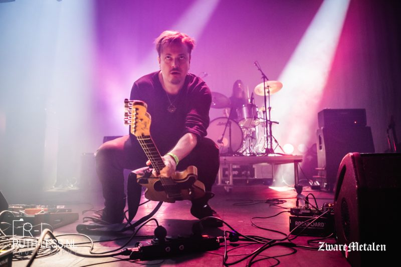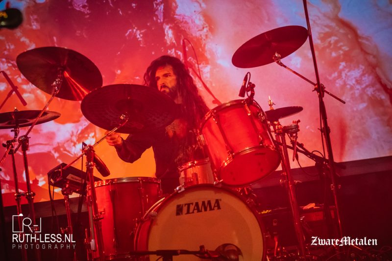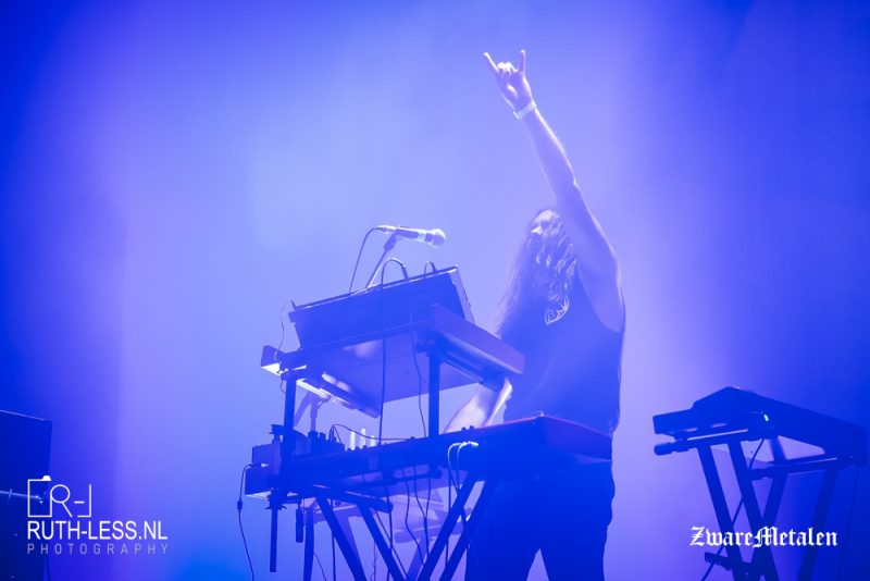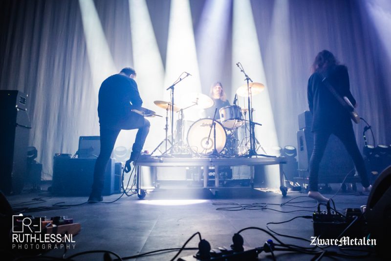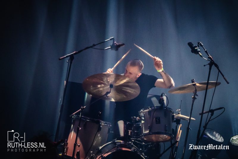 Die opgebouwde sfeer wordt even verstoord wanneer een of andere griet met een iPhone over het podium paradeert. Wat is die aan het doen? Een videoclip opnemen? Het leidt een beetje af van de muziek, maar goed, dat terzijde. De band speelt namelijk een heel fraaie set, waarbij er geconcentreerd gespeeld wordt. Het geluid is (ik val in herhaling) uitstekend afgesteld: zo kun je in Zhikarta de felle drums horen, terwijl het gitaargeluid en de gespeelde melodieën iets geruststellends hebben. Het samenspel tussen die twee zorgt ervoor dat het zowel dreigend als hypnotiserend klinkt.