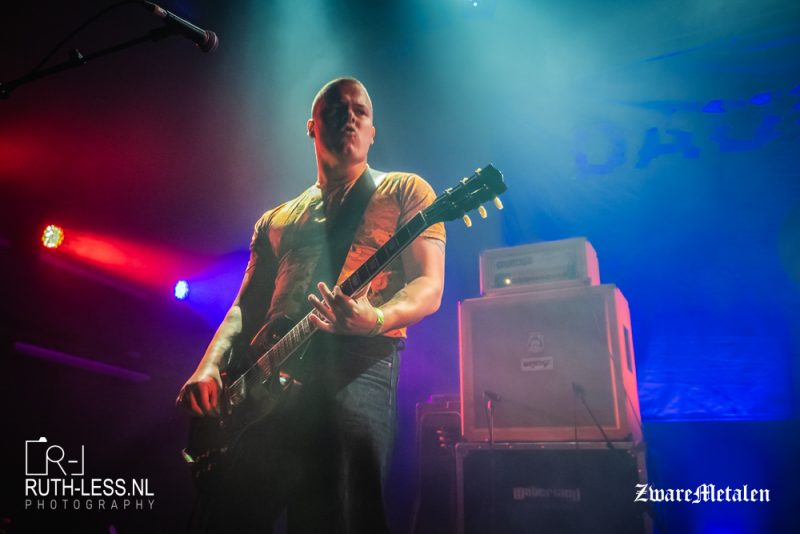 Gavran schudt de boel vandaag even wakker met hun repetitieve sludge/doom, waarbij er veel ruimte is voor cleane zang. Die klinkt her en der nog wel wat wankel, maar echt storen doet het niet, het past zelfs bij de sfeer van de muziek. Minder kapot ben ik van de bak effecten op de krijs, tijdens die momenten dwaalt mijn aandacht liever af naar de visuele beelden op de achtergrond die voornamelijk bestaan uit weide landschapsfoto’s. Die sluiten mooi aan bij de melancholische ondertoon die dit Rotterdamse viertal in zijn geluid legt.