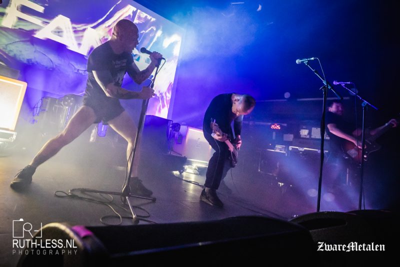 En hard komt het aan, het volume lijkt gedurende het optreden ook steeds meer te worden opgeschroefd. De mannen spelen steeds compromislozer, maar houden de aandacht wel vast doordat de structuur van de nummers steeds wijzigt en de opbouw telkens anders verloopt. Toch verslapt tegen het einde, tijdens de laatste twee nummers, de aandacht een beetje en is het monotone geschreeuw ineens iets teveel van het goede. Maar de band wint zieltjes en zet een puike show neer.