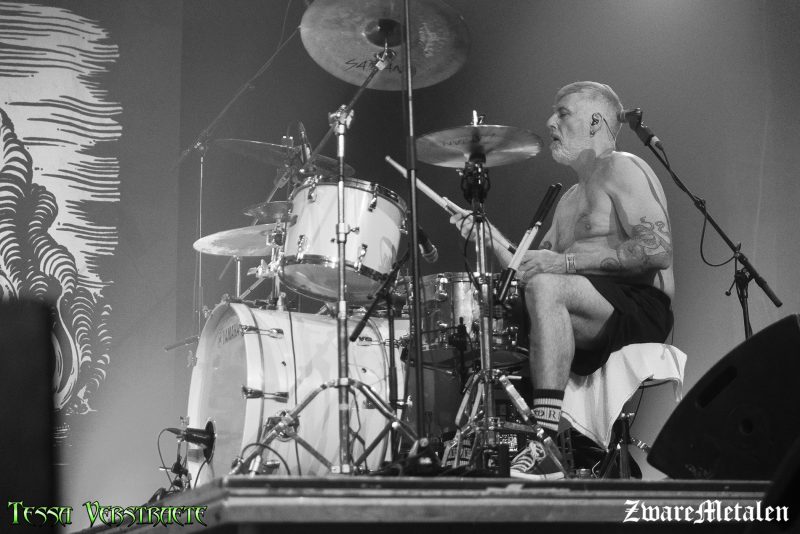 Ook wel een keer mooi om een duistere band als deze te zien onder kleurrijke lampen en zonder enorme mistbank. Hier oogt en klinkt het allemaal nog goed, maar ik ben benieuwd hoe lang van Drunen het met zijn zestig jaar nog volhoudt. Na zijn pensioen zal het wel einde verhaal zijn voor Asphyx, dus zoek ze nog op zolang het kan.