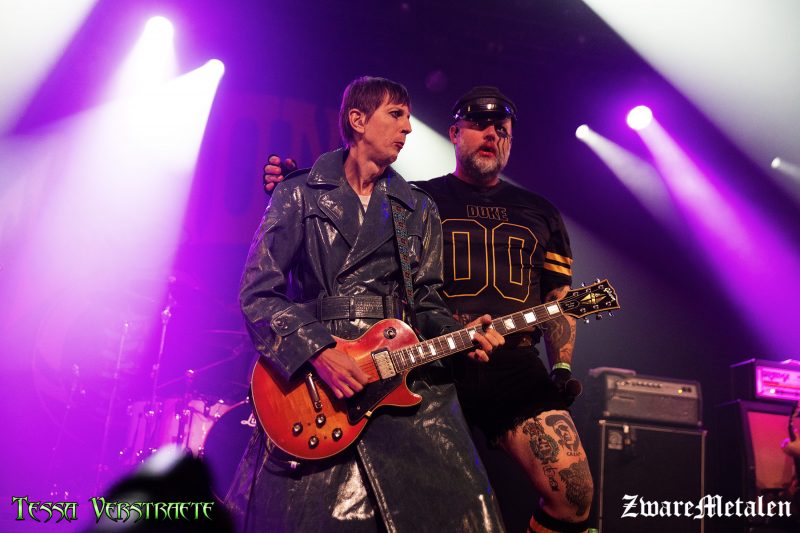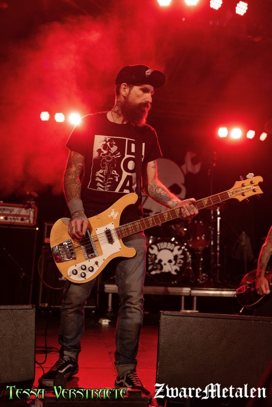De grote publiekstrekker van vandaag is natuurlijk de Noorse glampunkgroep Turbonegro. Inmiddels staat het klokgebouw stampvol met turbojugend die van heinde en verre zijn afgereisd om hun twijfelachtige idolen te zien. Ze moesten er dan ook zeven jaar op wachten, want sinds de Helldorado editie in 2018 zijn de Noren niet meer in Nederland geweest. Vanaf het eerste nummer Rocknroll Machine gaat de jugend op opblaasbare harten over het publiek. Na Sacred Reich zal er iemand aan de geluidsknoppen hebben gezeten, want het volume is duidelijk lager dan dat het eerst was. En dat verdient deze band natuurlijk niet. Het bonte gezelschap komt hier om een uitbundig feestje te bouwen en daar hoort een flinke bak herrie bij. Daar zorgt het publiek dan wel voor, want die kunnen Hurry Up And Die en Get It On uit volle borst meezingen.