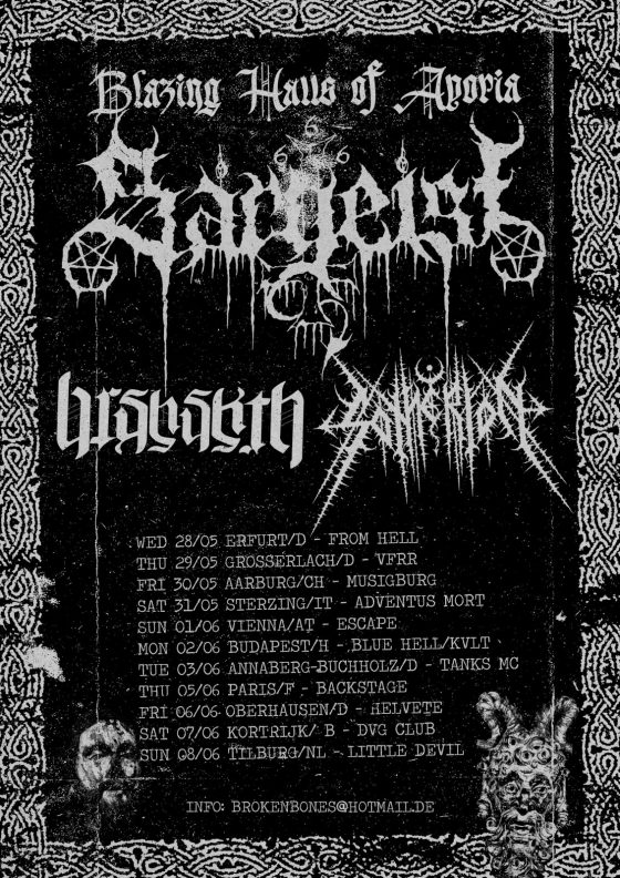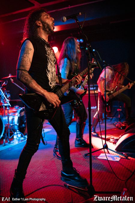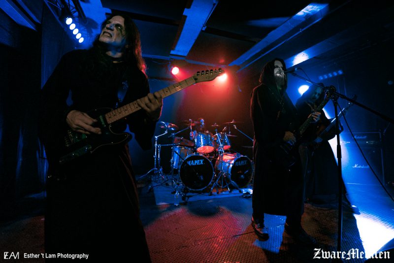 De afgelopen weken was het Finse Sargeist op tour om de release van hun nieuwe album Flame Within Flame te promoten. Zij deden dat in de nieuwe samenstelling, met Spellgoth op basgitaar en Nur-i-siyah op drums. Shatraug en VJS blijven in die opstelling nog steeds verantwoordelijk voor het gitaarwerk, waarbij Shatraug daarnaast nu ook de zang op zich neemt. Het Schotse Barshasketh en het Franse Sotherion reizen mee om het publiek op te warmen. In Nederland wordt de Little Devil in Tilburg aangedaan en de Belgische stop (gehost door Throne Fest) vindt plaats in de DVG Club te Kortrijk. Esther ‘t Lam nam een kijkje in de intieme, kleine zaal van de DVG Club, waar de temperatuur al snel opliep en het zweet nog net niet van de muren droop. Haar camera vergat ze niet en het resultaat kan je hieronder zien.