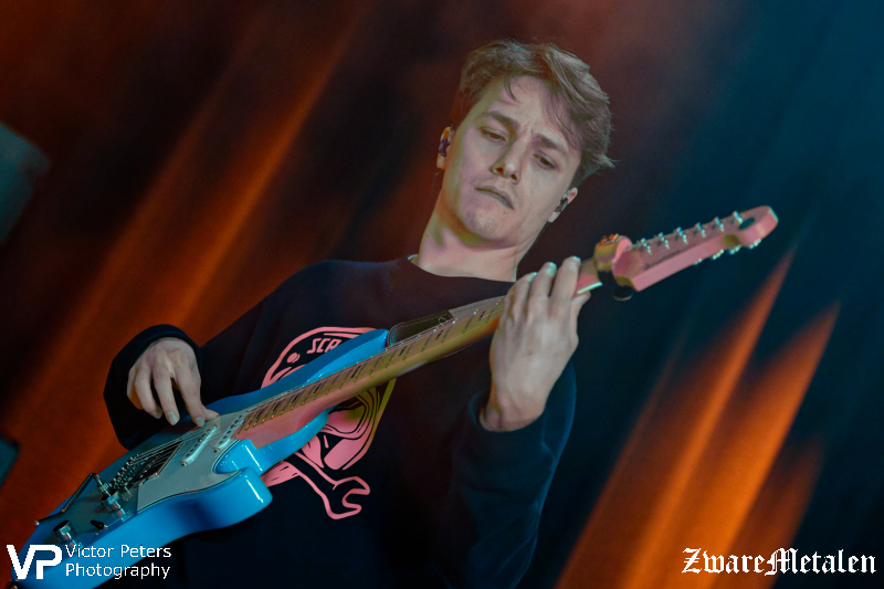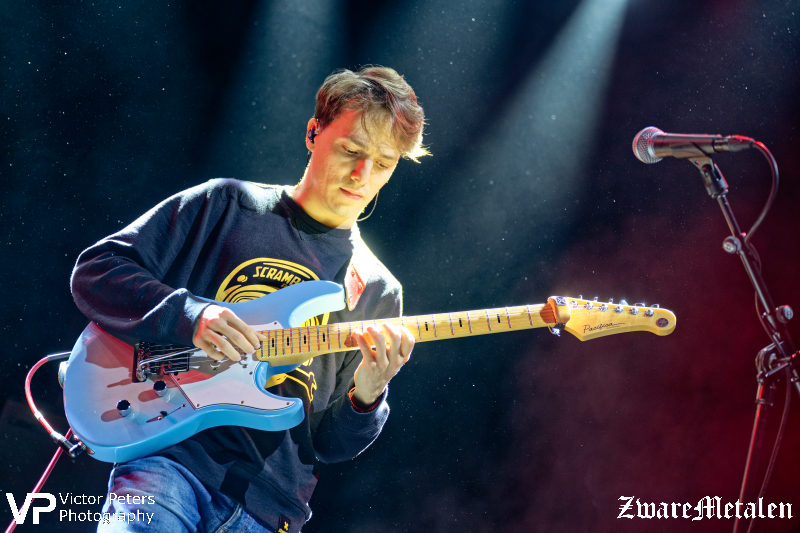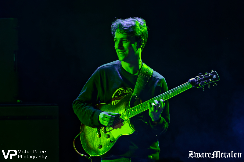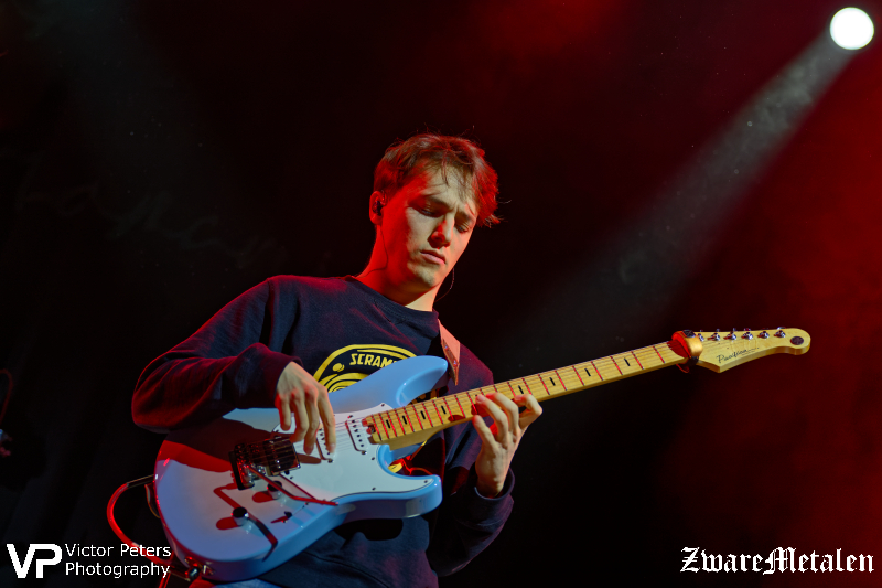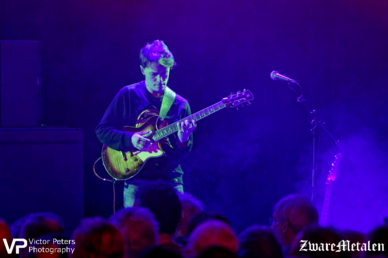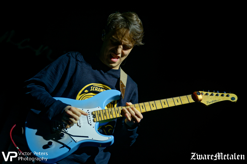 De Italiaanse gitaarvirtuoos Matteo Mancuso is voor kenners geen onbekende. Hij timmert ondanks zijn jonge leeftijd al vele jaren aan de weg en wordt door grootheden als Dweezil Zappa, Joe Bonamassa, Eric Johnson en Steve Vai gezien als de toekomst van de fusiongitaar. Matteo’s spel is opmerkelijk omdat hij geen plectrum gebruikt en de snaren in een soort ‘flamenco’ stijl aanslaat met z’n vingers. In 2023 kwam zijn eerste studioalbum The Journey uit, een mix van heavy gitaarriffs en melodieuze, jazzy gitaarspel. Tijdens deze tour wordt hij begeleid door landgenoten Riccardo Oliva op basgitaar en Gianluca Pellerito op drums. De foto’s zijn gemaakt door onze fotograaf Victor Peters.