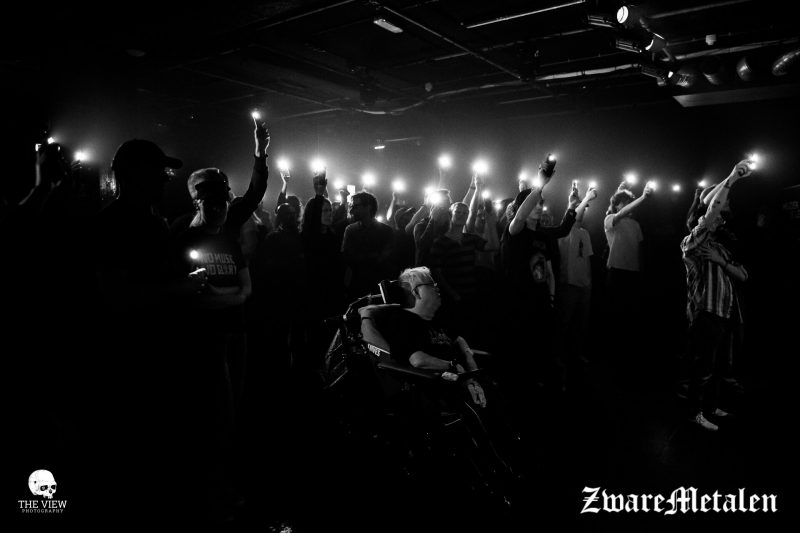 Dat is een mooi streven, maar daarvoor is wel geld voor nodig. Zo zijn er een hele week benefietshows gepland op locaties doorheen het hele land. Vanavond ben ik erbij voor het startschot met de heavy variant in Deventer. Geld uitgeven doet de bezoeker al door een kaartje te kopen, maar dat kan ook door een shirt aan te schaffen bij de stand van No Guts No Glory, al op vele festivals zichtbaar en het aanbod zal je verbazen als je gaat rondsnuffelen. Coole shirts van Bolt Thrower, Life Of Agony, Darkthrone en Skroetbalg zijn zomaar wat namen van bands die je tegen komt. Allemaal gedoneerd door de barmhartige mens.