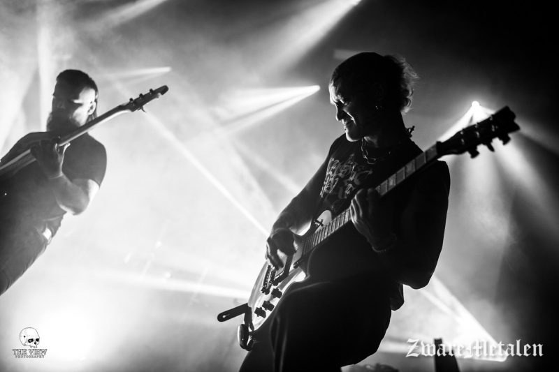Deze bands live aanschouwen is een ervaring op zich. Vooral Sunken uit Denemarken creëert een vibe op het podium die je meesleept in zijn muziek. De urgentie en wanhoop die je voelt in de zang, het melodieuze in de muziek. De afbeeldingen hieronder geven het goed aan. Het succesvolle album Lykke uit 2025 heeft de band veel gebracht en dat is te zien in de goed gevulde zaal. Omgeven door veel rook zet de band een zeer sterke set neer.