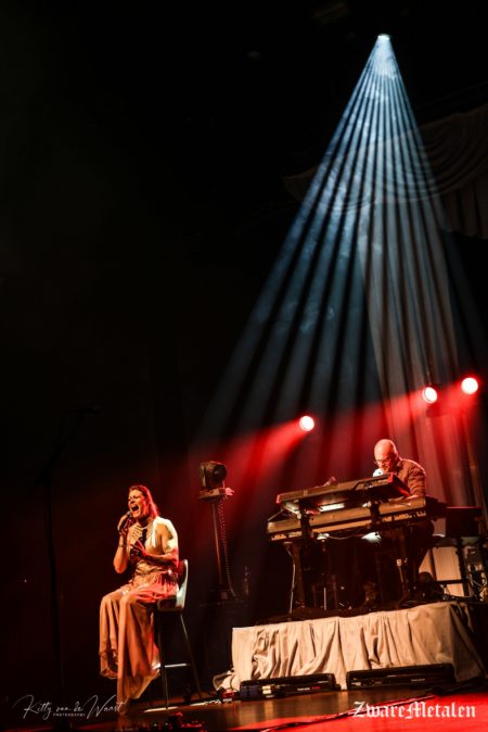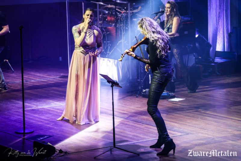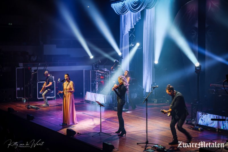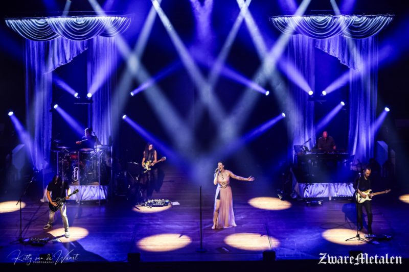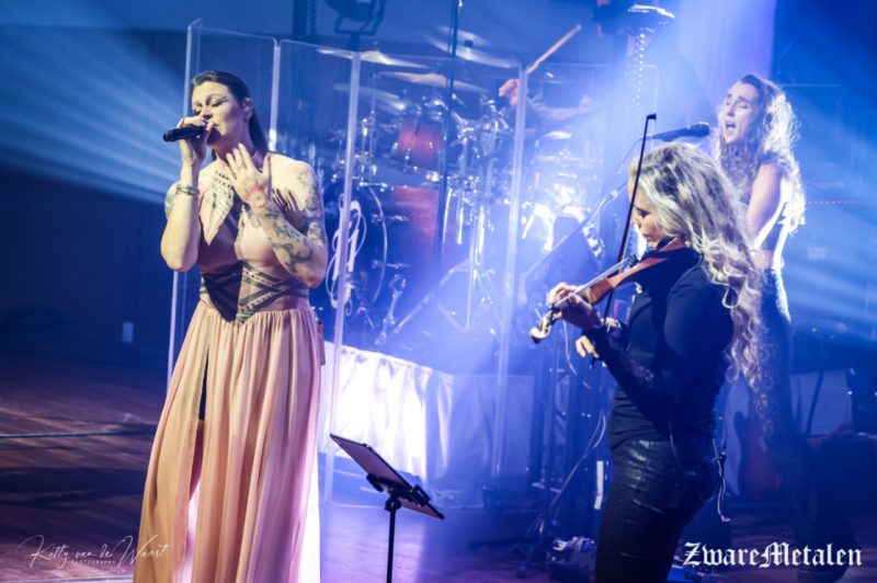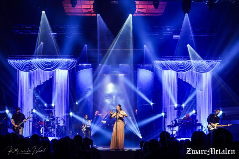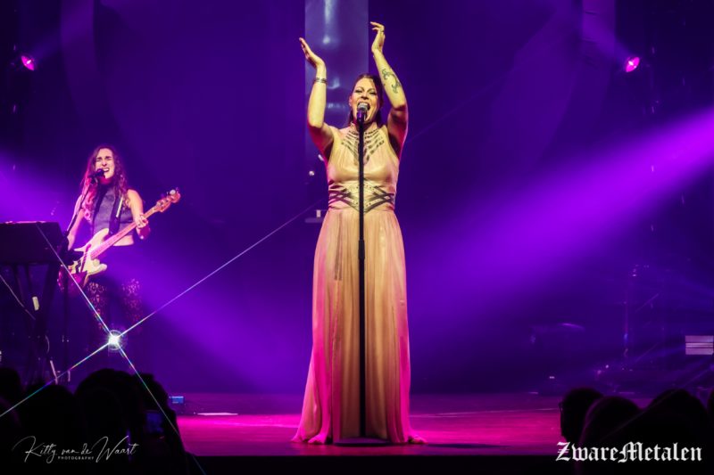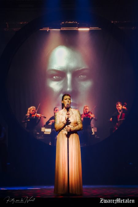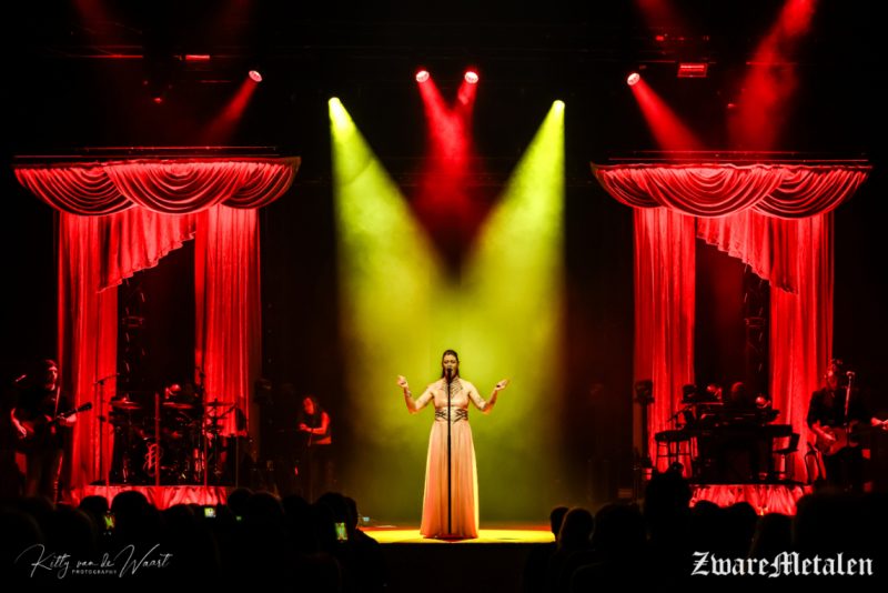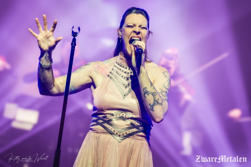Als een soort Griekse godin verschijnt Floor Jansen op het podium van TivoliVredenburg in Utrecht. Geen zwart leder, geen studs maar wel een zachtroze jurk die perfect past bij de doeken die als zuilen het decor vormen voor deze avond. En dat is geen toevallige keuze als je de titel van haar eerste en meteen uitverkochte theatertour hoort: Strijdlust. Floor vertelt over haar jeugd, over meevallers en tegenslagen en hoe het leven van haar een strijder heeft gemaakt. De grote zaal luistert ademloos en de heel persoonlijke nummers komen flink binnen. Maar Floor’s blote voeten verraden meteen dat er ook ruimte is voor wat luchtigheid. En de jurk is wel roze, maar toch ook leder en een streepje metal is daarom nooit ver weg. Kitty van de Waart was erbij en mocht de avond vastleggen.