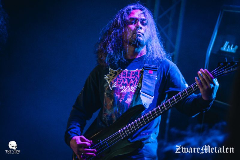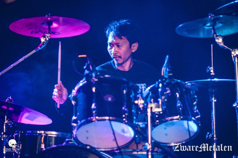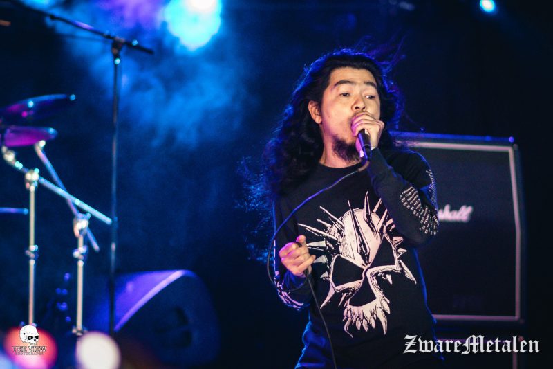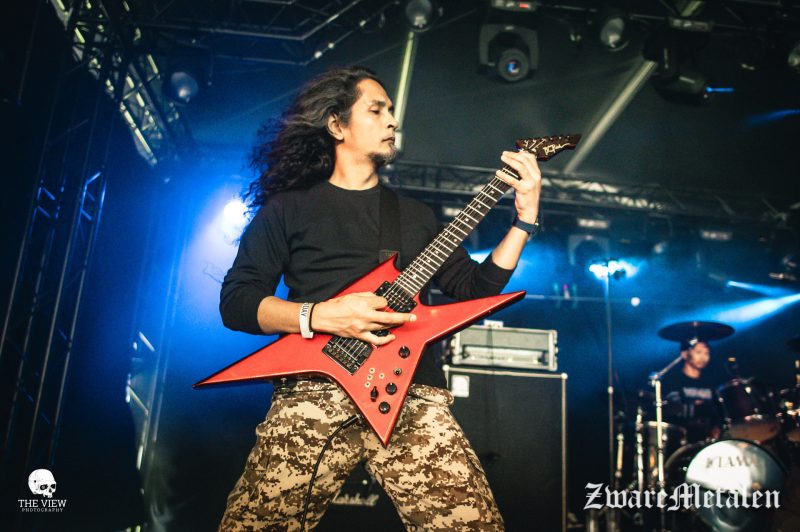 Humiliation is de eerste Maleisische band die voet zet op het Pitfestfestivalterrein. De tent loopt al gauw vol na het optreden van Grindpad op het Ellert Stage en de band kickstart zijn optreden op de Brammert Stage met trage riffs en lompe polka’s als een oude dieseltractor. De muziek roept meteen een Unleashed-sfeer op. De kick zit zo hard in de mix dat hij mijn neusvleugels doet trillen. Misschien zelfs iets te hard waardoor hij de rest wat wegdrukt. Aan de andere kant voelt het dubbel om als rechtgeaarde metalliefhebber te klagen over een harde basdrum. Het lijkt erop dat drummer Mudon veel naar AC/DC heeft geluisterd, want Phil Rudd’s adagio ‘elke klap telt’ is duidelijk in zijn spel terug te horen. Hij speelt geen slag te veel. Humiliation’s muziek is primitief maar uiterst effectief. Deze proto-metal gaat er goed in bij het opstartende publiek. Misschien zou het publiek nog iets meer geactiveerd worden met wat meer variatie in tempo’s maar de uitgebeende composities luisteren lekker weg en iedereen knikt lekker mee. Buiten lijkt het zonnetje voorzichtig door te breken. De band speelt veel voltreffers van pakkende riffs en af en toe passeren er zelfs wat Bolt Thrower-achtige tankstukken.