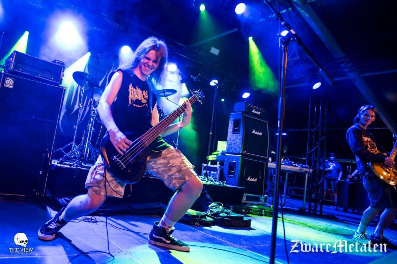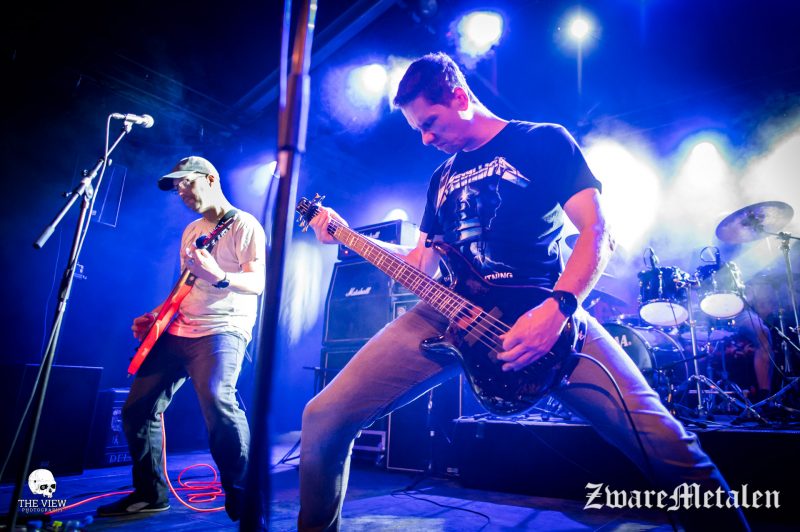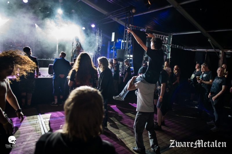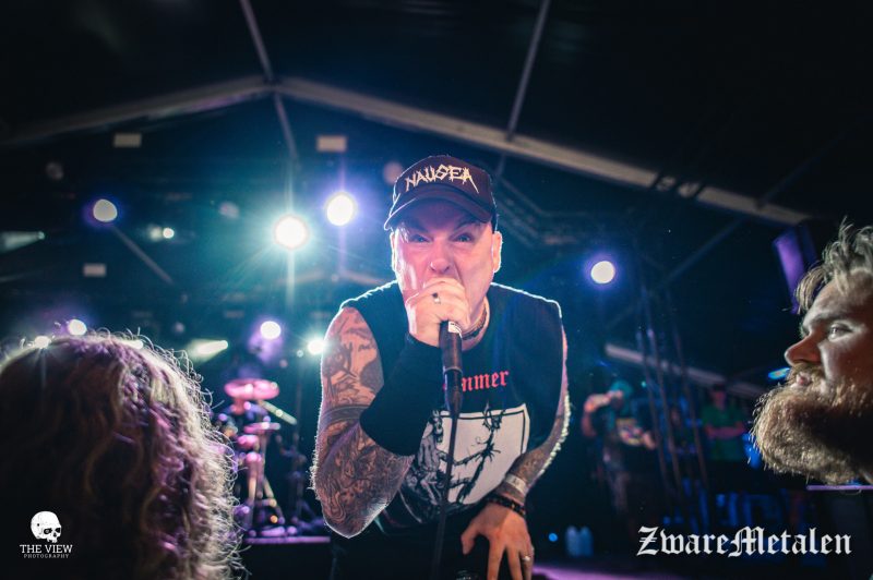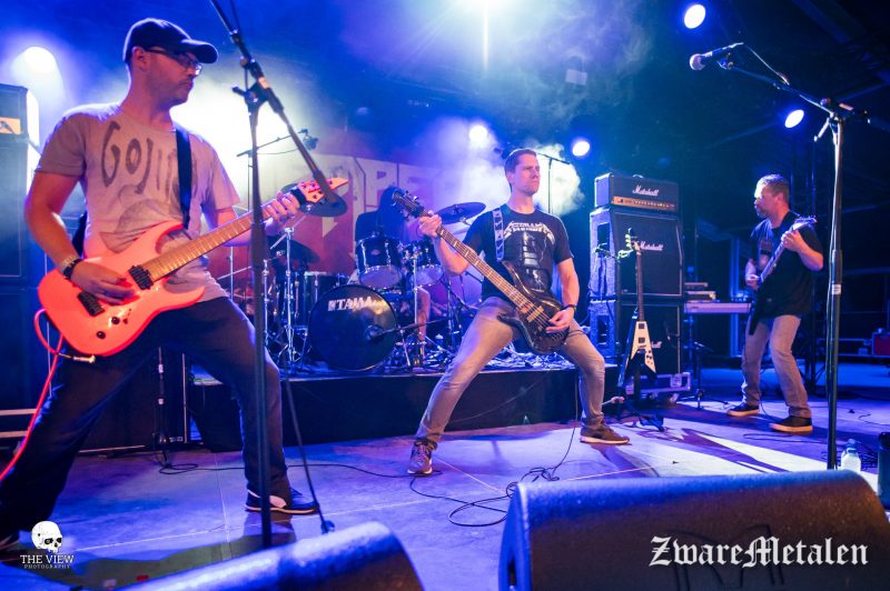 Semper Fi is de eerste band die ik zie op deze negende editie van Pitfest. Met een vers getapt biertje in de hand sluit ik aan voor de Brammert Stage, waar zanger Arno het publiek net de vraag voorlegt of er nog Kreator-fans in de zaal zijn. De mannen uit Hoogeveen voegen meteen de daad bij het woord en knallen People Of The Lie erin. Pitfest doet zijn naam eer aan want er ontstaat meteen een bescheiden moshpit. Waar we dit jaar geen oranje-interferentie van het EK voetbal hebben, doet de knaloranje gitaar daar onverhoeds toch even aan terugdenken. De entree is vanavond gratis en dat blijkt een goede strategie. Er is vandaag namelijk al een gezellig meute metalfans op de been en ook de tent is aardig gevuld. Ook vloeit het bier vanavond al rijkelijk, waarmee hopelijk ook wat geld voor de organisatie binnenkomt. Als Semper Fi Hallowed Be Thy Name speelt zwelt de pit wat aan en zie ik het eerste biertje vrolijk vliegen. Het publiek gaat los en de zanger heeft er zichtbaar zin.