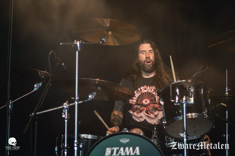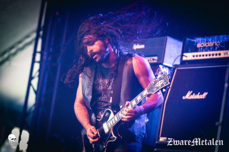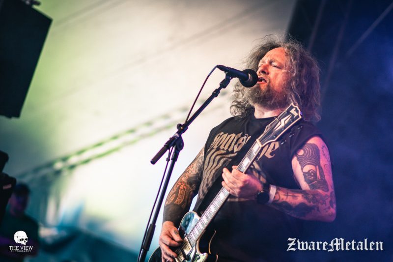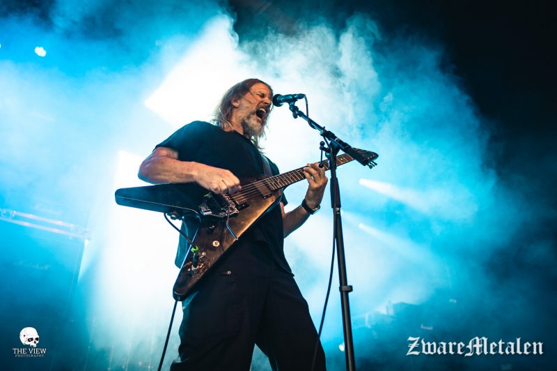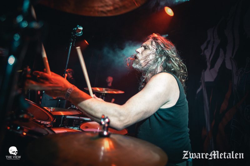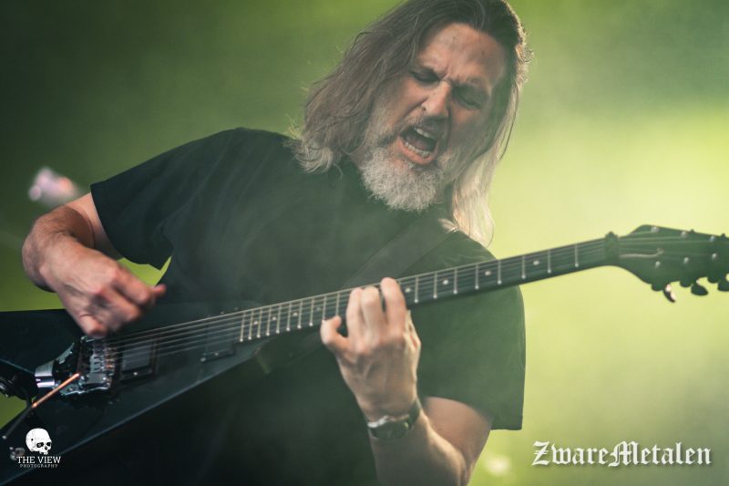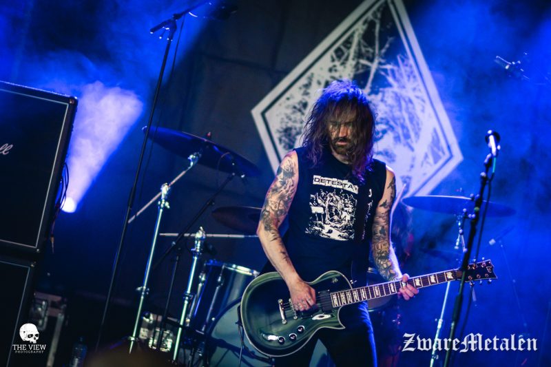 Oekraïners die het over oorlog hebben is al een serieuze aangelegenheid, maar als ze dat dan ook nog eens als blackened doommetal doen wordt het wel een héél zwaarmoedig geheel. De zichtbaar getergde mannen van 1914 pompen al hun verdriet, boosheid en frustratie in de muziek die ze maken en je zou denken boze klanken te horen. Maar het blijft bij weemoedige, duistere tonen van doommetal. Geef ze ook eens ongelijk, hun eerdere drummer bevindt zich nog aan het front en de strijd tegen de Russen kost al jaren elke dag levens. Dat juist deze band met een oorlogsthema nu speelt schept een deprimerend beeld. Na een dankwoord van frontman Ditmar Kumarberg voor de Nederlandse steun aan hun thuisland hervat men de set. Deze bestaat grotendeels uit uit het meest recente album Where Fear and Weapons Meet. Een kneiter van een plaat die ook hier hoge ogen gooide. Hier ligt er toch echt wel een begrijpelijke domper op het werk van de heren. Het duurt tot ver in de set, als ze aan A7v Mephisto en Passchenhell van de voorlaatste plaat beginnen, dat er wat pit in komt. Kumarberg verdwijnt hierbij wel in de voorste rijen van het publiek en keert pas tegen het einde van de set weer terug op het podium. De zo eerbiedig luisterende toeschouwers hadden zo toch nog wat om enthousiast van te worden. Geen ‘Slava Ukraini’ aan het eind, maar wel een ‘fuck Putin’ van de frontman terwijl hij de Oekraïense vlag is zijn gebalde vuist vast houd. In de context van alle ellende aan het front was dit een zeer indrukwekkend optreden. (RB)