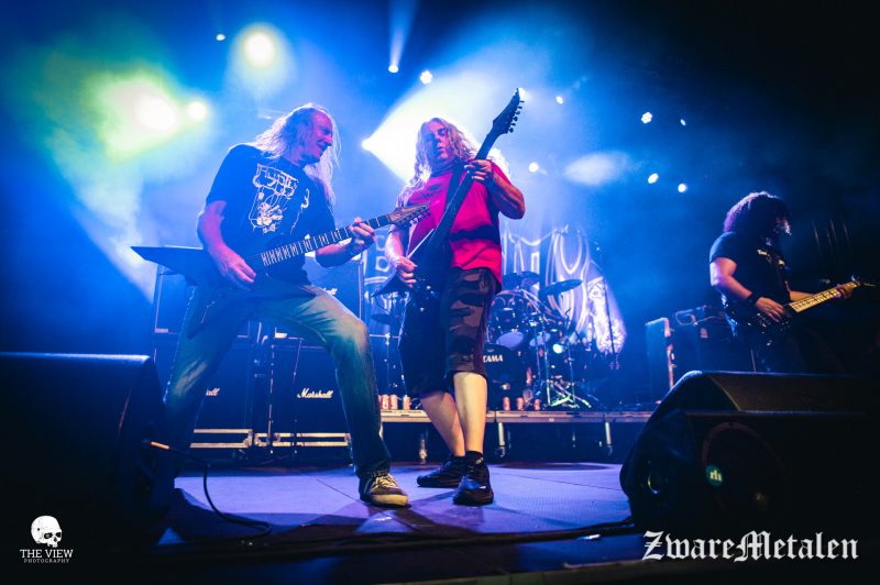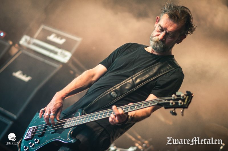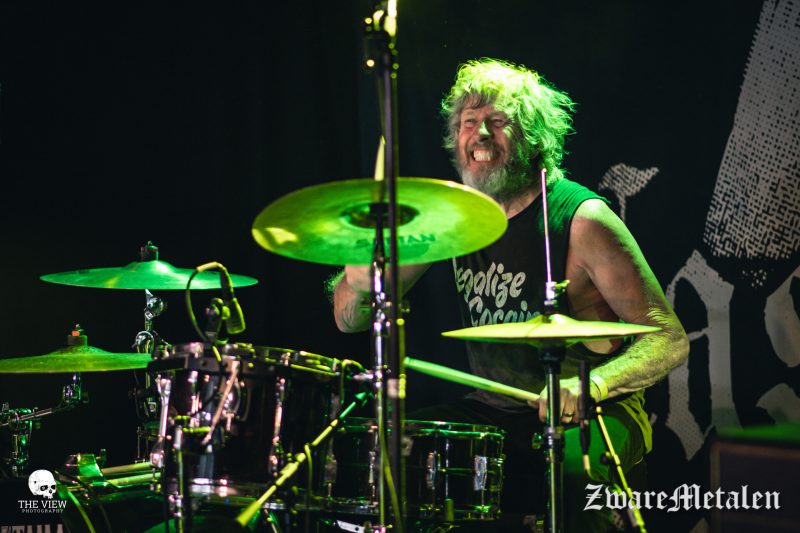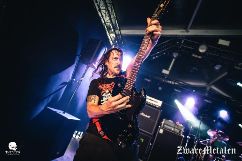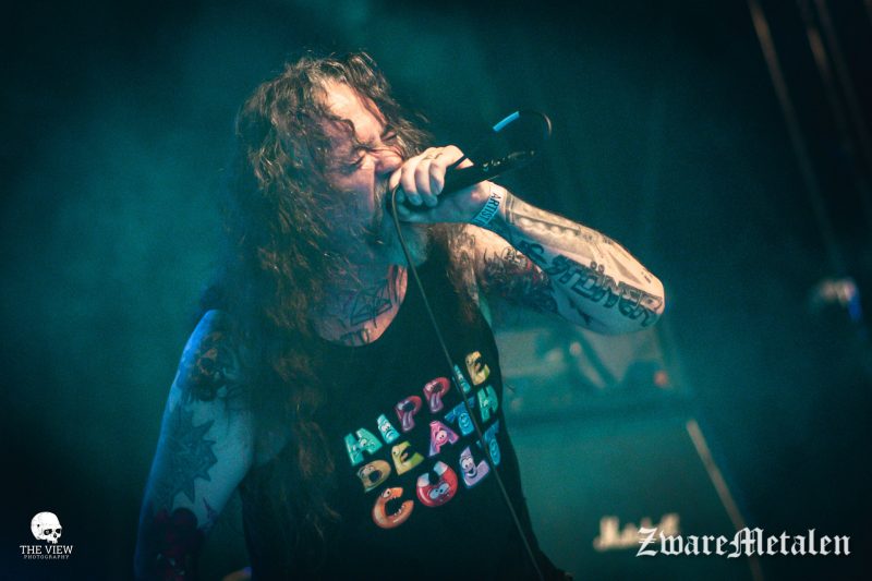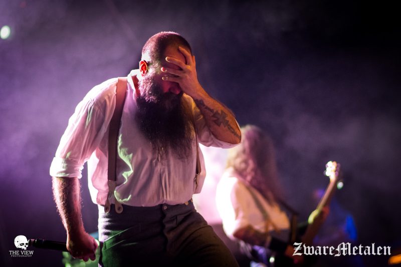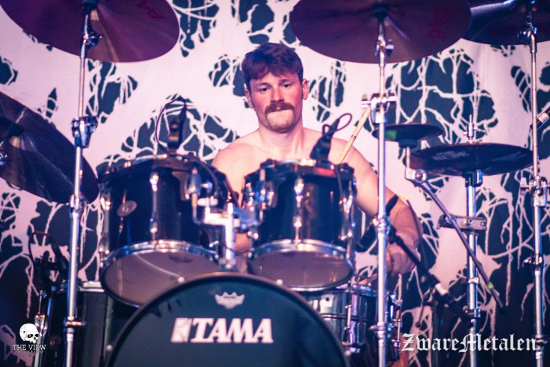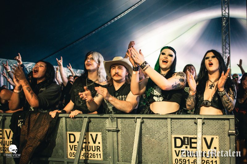 Oekraïners die het over oorlog hebben is al een serieuze aangelegenheid, maar als ze dat dan ook nog eens als blackened doommetal doen wordt het wel een héél zwaarmoedig geheel. De zichtbaar getergde mannen van 1914 pompen al hun verdriet, boosheid en frustratie in de muziek die ze maken en je zou denken boze klanken te horen. Maar het blijft bij weemoedige, duistere tonen van doommetal. Geef ze ook eens ongelijk, hun eerdere drummer bevindt zich nog aan het front en de strijd tegen de Russen kost al jaren elke dag levens. Dat juist deze band met een oorlogsthema nu speelt schept een deprimerend beeld. Na een dankwoord van frontman Ditmar Kumarberg voor de Nederlandse steun aan hun thuisland hervat men de set. Deze bestaat grotendeels uit uit het meest recente album Where Fear and Weapons Meet. Een kneiter van een plaat die ook hier hoge ogen gooide. Hier ligt er toch echt wel een begrijpelijke domper op het werk van de heren. Het duurt tot ver in de set, als ze aan A7v Mephisto en Passchenhell van de voorlaatste plaat beginnen, dat er wat pit in komt. Kumarberg verdwijnt hierbij wel in de voorste rijen van het publiek en keert pas tegen het einde van de set weer terug op het podium. De zo eerbiedig luisterende toeschouwers hadden zo toch nog wat om enthousiast van te worden. Geen ‘Slava Ukraini’ aan het eind, maar wel een ‘fuck Putin’ van de frontman terwijl hij de Oekraïense vlag is zijn gebalde vuist vast houd. In de context van alle ellende aan het front was dit een zeer indrukwekkend optreden. (RB)