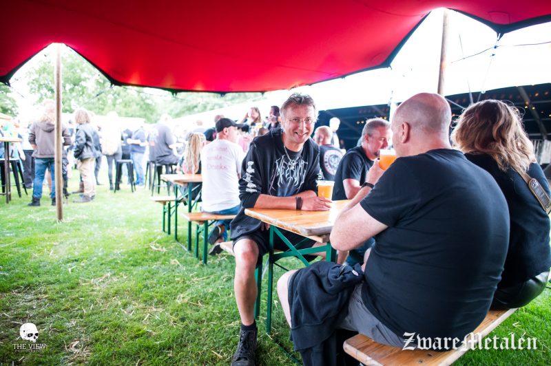 Een podiumbrede backdrop vult achter Dödsrit de Ellert Stage. Het blijft een ruig logo. Dödsrit begint aardig ‘stadionfähig’ te worden. Met de blastbeats vormt het geheel een lekker sonische blackmetalbrij. De band weet het publiek met de vakkundig opbouwende nummers in vervoering te brengen. Je zou het nieuwere, meer melodische werk kunnen omschrijven als Iron Maiden met blastbeats of een groovy versie van Ellende. De ‘wolf met zwaard-banner’ kon niet toepasselijker bij deze van epiek doordrenkte muziek. Voor mij wordt het soms wat te zoetsappig, ondanks dat het allemaal zeer overtuigend wordt uitgevoerd. Het zijn toch de ziedende blackmetalpassages waar ze volgens mij excelleren. Gelukkig komen ook die ruim aan bod! Mooi dat de linkerhelft van de tent inmiddels het lage avondzonnetje op de rug heeft met de ijzige blackmetal in hun smoel. Het nieuwe, meer stadionvriendelijke materiaal is goed te verteren maar heeft voor de doorgewinterde blackmetalliefhebber soms misschien wat te weinig pit. Voor mijn gevoel komt de muziek live wat minder overtuigend over dan op plaat en ik vraag me af of het de tand des tijds doorstaat. Maar wie ben ik? Dödsrit weet het publiek tenslotte te boeien en zonder veel pauzes gaan ze maar door. Het publiek vooraan lijkt inmiddels zelfs een beetje in trance geraakt. Met de zon nu tot midden in de tent is iedereen schijnbaar te comfortabel om agressief te bewegen: een echte pit blijft uit. (JS)