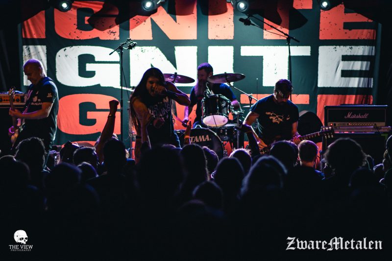 Voor een beetje aaibare anarchie kunnen we aankloppen bij Ignite. De hardcorepoppunkband weet met licht gitaarwerk en cleane vocalen een toegankelijk geluid neer te zetten. Veel werk van het Our Darkest Days album komt voorbij en dat is echt een tijdscapsule voor 2006. Iets wat het jonge publiek diep in de ziel kan voelen, want iedereen is hier weer een vrolijke puppy. Alles kan weer vanavond, of je knieën het nou nog doen of niet. Aangemoedigd vanuit de coulissen door de mannen van Wisdom in Chains die ook graag wat achtergrondvocalen verzorgen, blijft de energie hoog in de tent. Een punkband moet protestliederen hebben en dus wordt Sunday Bloody Sunday van U2 gecoverd. Even het tempo omlaag voordat de korte popnummers weer terugslaan. Ook het nieuwere werk van hun meest recente zelfgetitelde plaat zoals Anti-Complicity Anthem en This Day laten het bekende geluid nog horen. De vrolijke noot van vandaag heeft duidelijk geklonken. Leuke herrie van de Amerikaanse groep, even terug in de tijd en toch helemaal in het moment zijn. (RB)