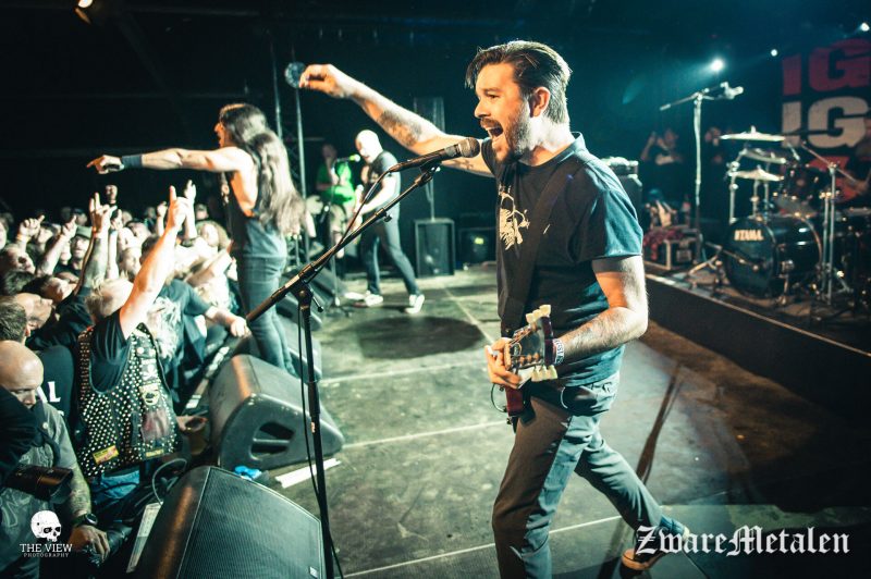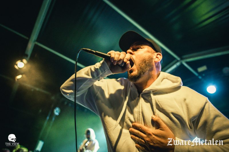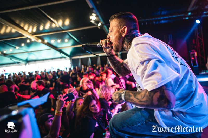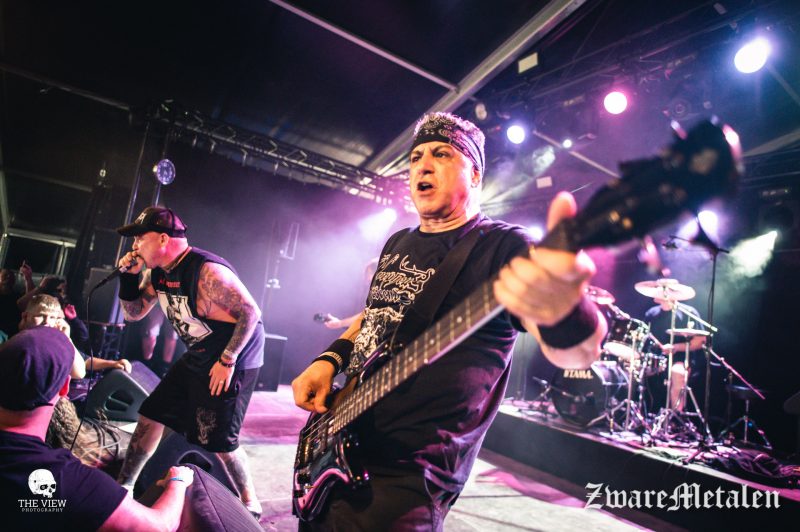 Wisdom in Chains heeft ergens Nederlandse roots, maar vandaag de dag bestaat de band volledig uit Amerikanen. Inmiddels met nieuwe frontman en grote vriendelijke reus Frankie Puopolo op de microfoon. De Oi!-invloeden spatten ervan af. Boze muziek voor de arbeidersklasse. Ze staan hier op beide dagen van het festival, maar vandaag hebben ze een grotendeels eigen setlist. We horen hier onder andere de nieuwe nummers The Gospel en Mindset. Deze songs leunen iets meer richting de punkkant, wat het geheel wat vrolijker laat klinken. Vermakelijke stampmuziek en stampen doet het publiek ook hier gretig, tot groot genoegen van Puopolo. Morgen doen ze een speciale Blood for Blood-set, zoals ze wel vaker doen, maar ook vandaag spelen ze daar ook een tweetal nummers van. En dan is het duo All Fucked Up en Still Fucked Up niet slecht om op te eindigen. De heren van Wisdom in Chains zijn goed warmgedraaid voor morgen en het publiek zal ook wel duizelig zijn van de pit. (RB)