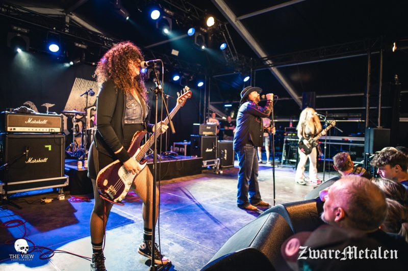 Tussen al het hardcoregeweld op de Brammert Stage door staat er ook ineens Nashville Pussy met hun mix van Southern hardrock en punk. Echtpaar Blaine Cartwright en Ruyter Suys zijn hier net zo goed om de boel op de kop te zetten. Vuige teksten en swingende gitaren zijn het handelsmerk van de uit Georgia afkomstige band. Met het eerste nummer Pussy’s Not a Dirty Word weet je al direct waar je aan toe bent. Slonzige country riffs en het zuidelijke accent van Cartwright zorgen voor een bijna stereotype beeld. Vermakelijk is het wel. Het viertal is getraind entertainment. Cartwright schenk een biertje in z’n zweterige cowboyhoed om het vervolgens over zijn gezicht te gieten en Suys spuugt bourbon over de eerste rij die er soms hun mond nog voor open doen ook. De bourbon is dan wel weer het enige dat echt uit de staat Tennessee komt. Ze brengen een flinke dosis rock-‘n-roll naar Emmen. De grote finale is Go Motherfucker Go en Suys trekt hierbij alle snaren uit haar gitaar. Dit was een optreden om niet snel te vergeten. (RB)