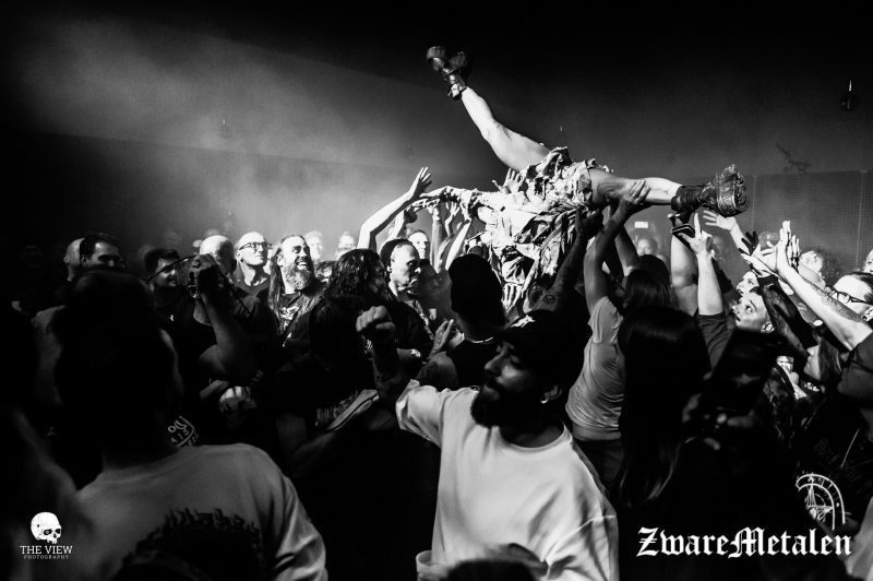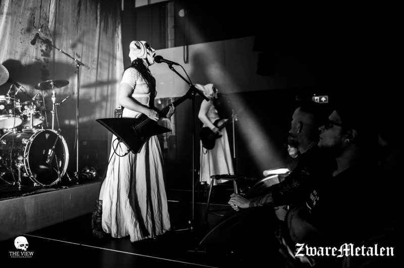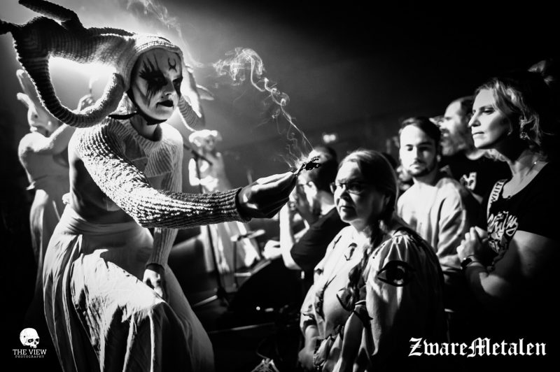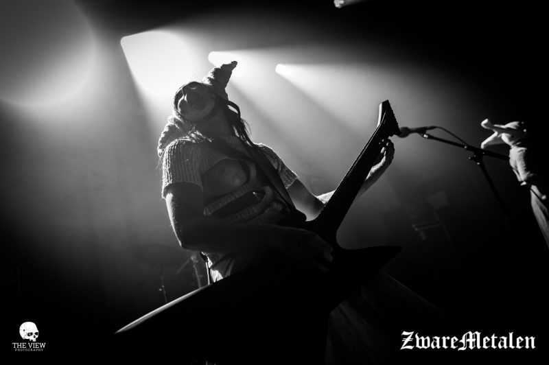 Witch Club Satan heeft er vanavond voor gezorgd dat het uitverkocht is. Als de dames opkomen, krijg je het idee dat er een volwaardige theatershow aangeboden gaat worden. Om te aanschouwen is dit in ieder geval erg indrukwekkend. Muzikaal heeft de band rauwe black metal in de aanbieding, uitgedragen in nummers die verschenen zijn op de in 2024 uitgebrachte gelijknamige Witch Club Satan. Het is vanavond excentriek en de band stelt zich kwetsbaar op. En dat is letterlijk open en bloot. De interactie met het publiek ontstaat door een onontkomelijk soort hypnotisering. De toverkrachten van deze heksen vloeien in de hoofden van de bezoekers. Beleef de show mee in de beelden die onze fotograaf Frido geschoten heeft.