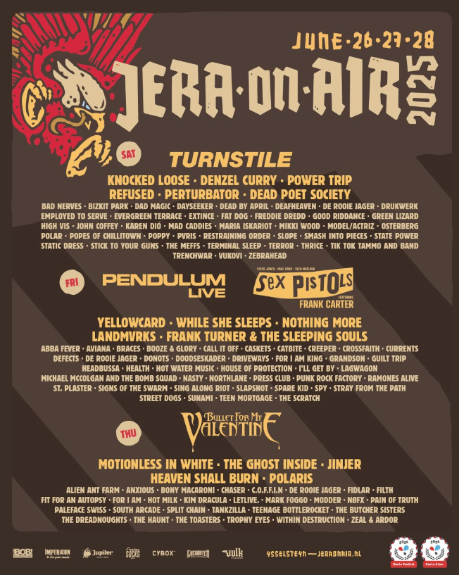 Op 26, 27 en 28 juni staat het Limburgse Ysselsteyn weer volledig op zijn kop. De eenendertigste editie van het hardcore, metalcore- en punkfestival Jera On Air zal dan plaatsvinden en ook Zware Metalen is daarbij aanwezig om verslag te doen. De organisatie van het driedaags festival heeft het voor elkaar gekregen om wederom wat fraaie namen te strikken.