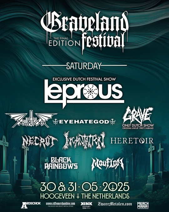 Markeer de datums 30 en 31 mei gerust alvast dikgedrukt in je agenda: dan staat de nieuwe én laatste editie van Graveland Festival op het programma. Het evenement vindt plaats in Hoogeveen en parkeren doe je naast het festivalterrein. Dit jaar staat er weer een interessant programma op jullie te wachten. Zo geven Leprous en Dark Tranquility hun enige Nederlandse, exclusieve festivalshow en zal de Zweedse deathmetalband Grave -speciaal in zijn originele bezetting- zijn set alleen focussen op de eerste drie albums die men uitbracht. Daarnaast treedt Wormrot ook op in zijn originele bezetting!